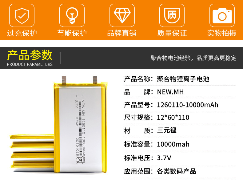 1260110 폴리머 전원 은행 에어컨 의류 난방 의류 리튬 배터리 모바일 전원 공급 장치 10000mAh 배터리 셀