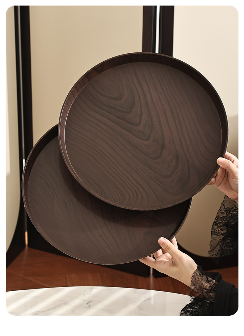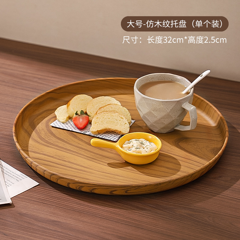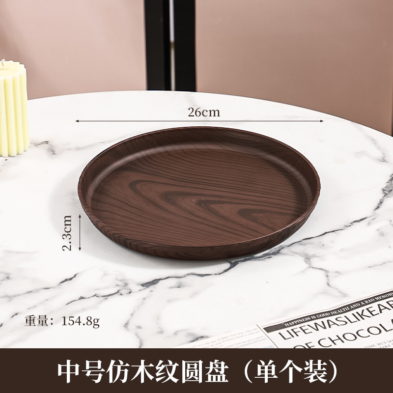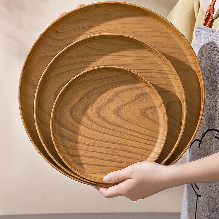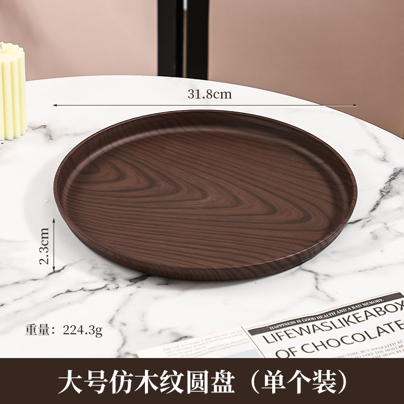 아마존 국경 간 모방 호두 라운드 트레이 아트 딤섬 케이크 트레이 카페 트레이 티 트레이 디너 플레이트