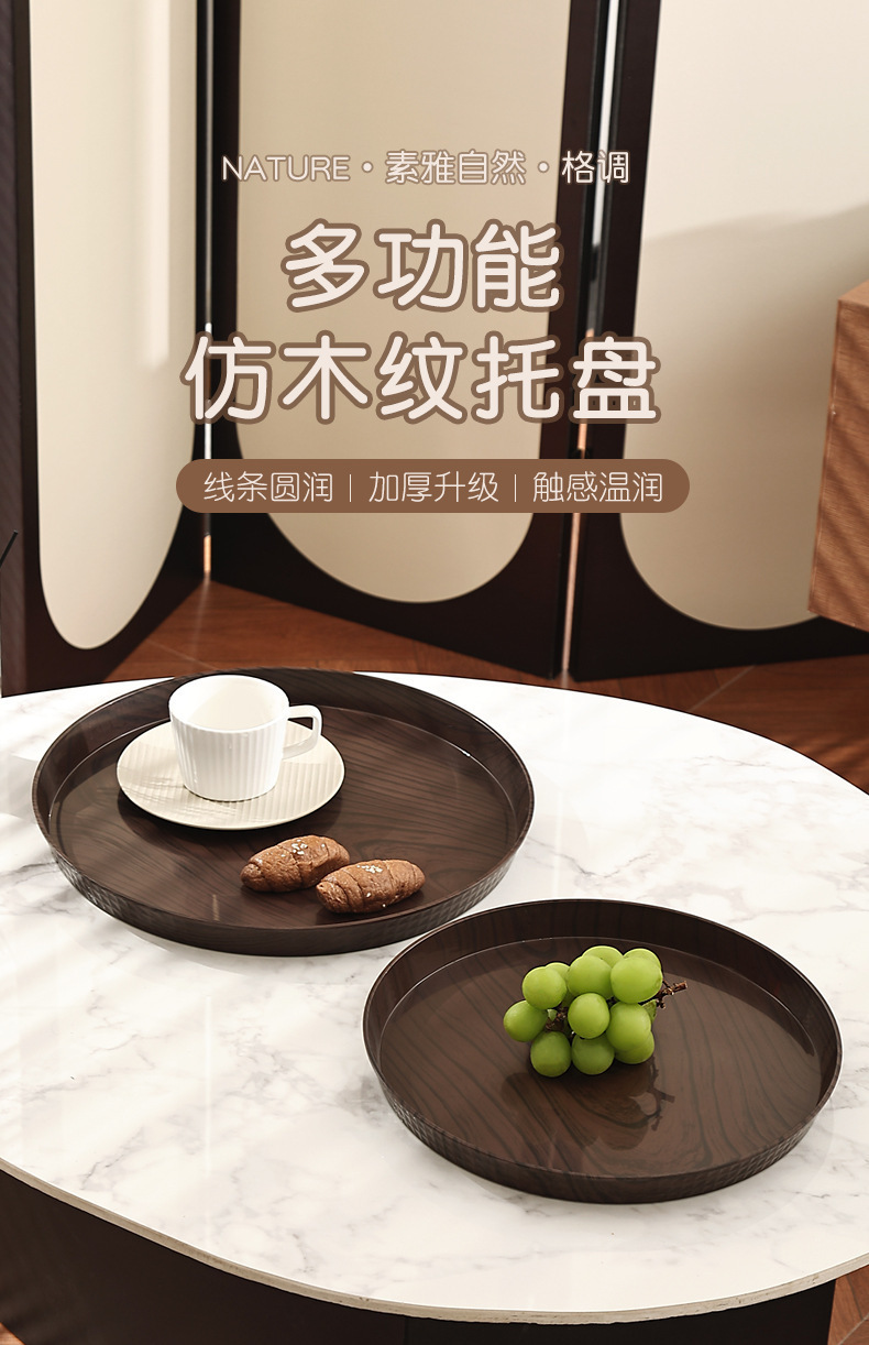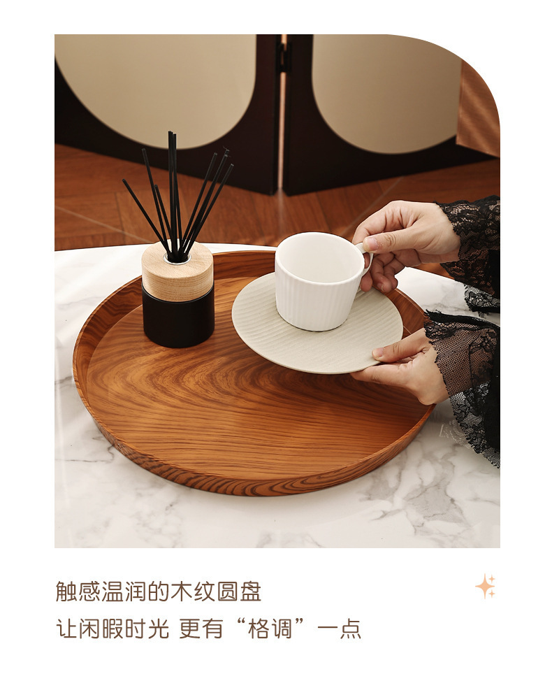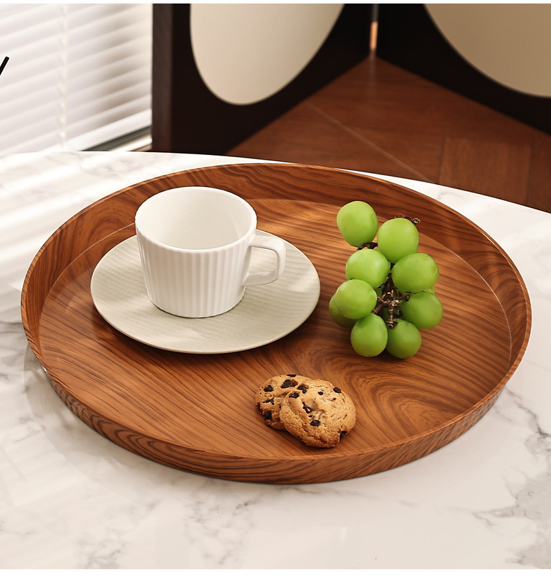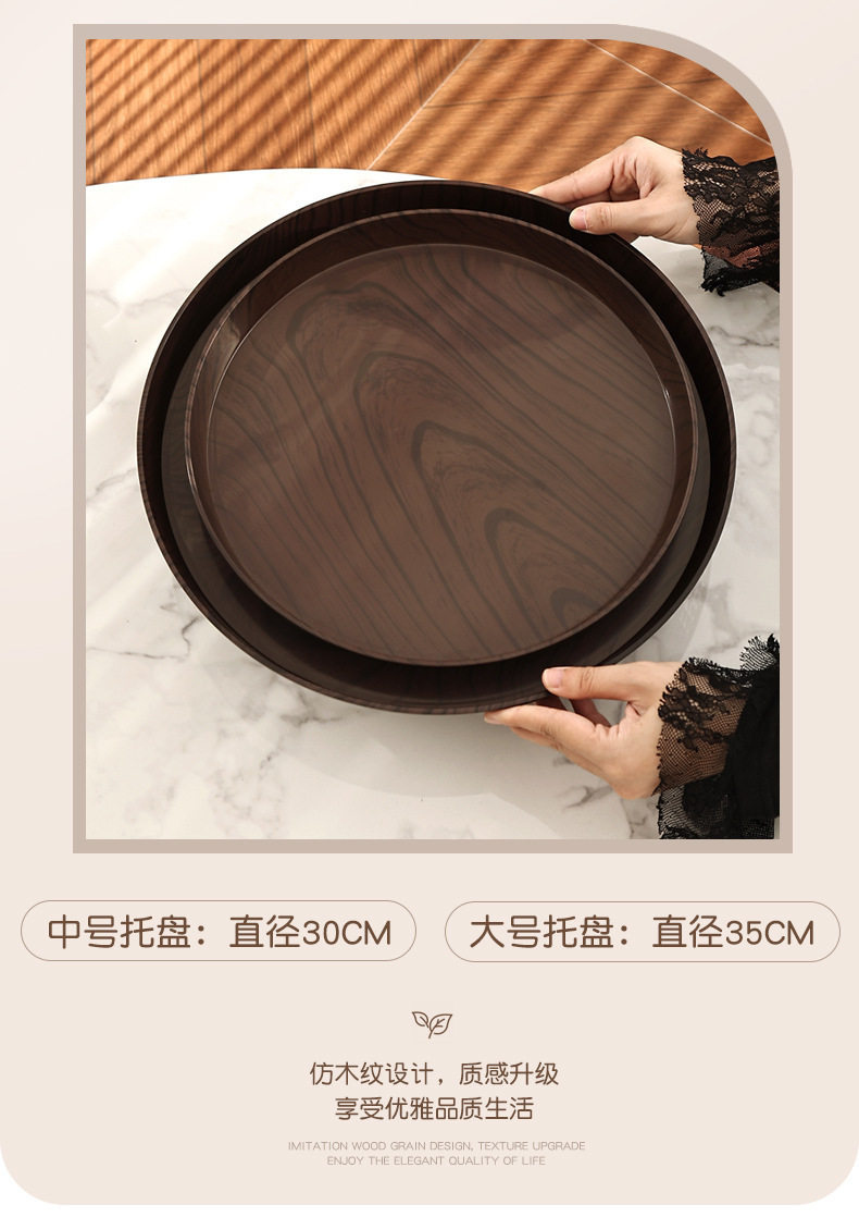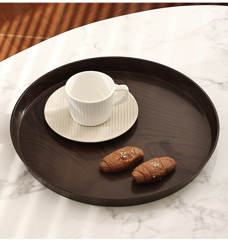 아마존 국경 간 모방 호두 라운드 트레이 아트 딤섬 케이크 트레이 카페 트레이 티 트레이 디너 플레이트
