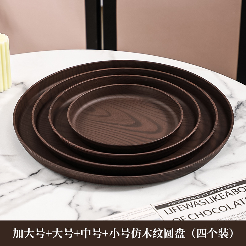 아마존 국경 간 모방 호두 라운드 트레이 아트 딤섬 케이크 트레이 카페 트레이 티 트레이 디너 플레이트스토어 가기