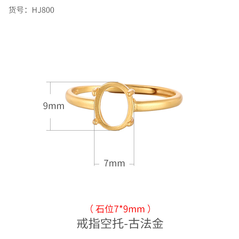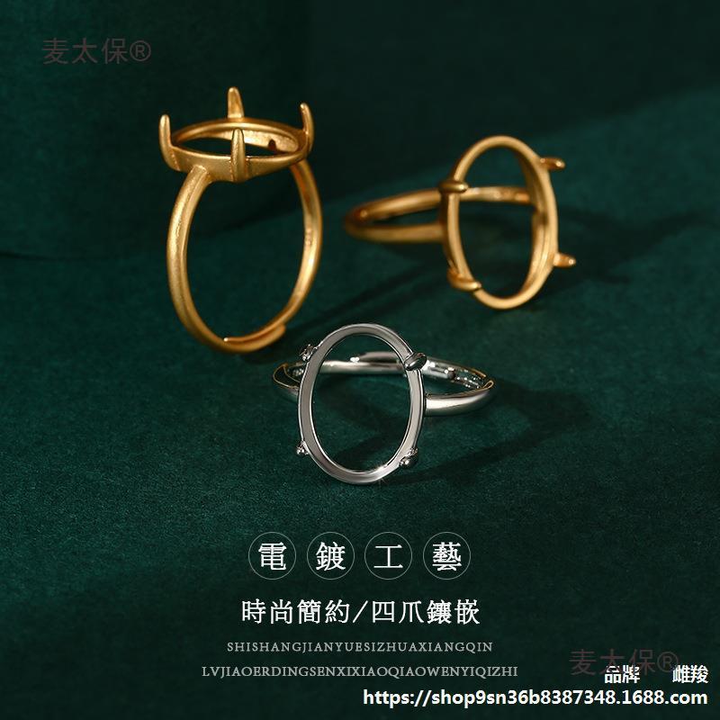 18K 에메랄드 청록색 반지 골드 4발톱 반지 빈 앰버 인레이 심플 홀더 타이바오 타원형 밀랍 홀더스토어 가기