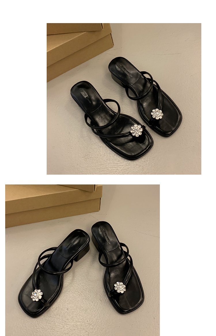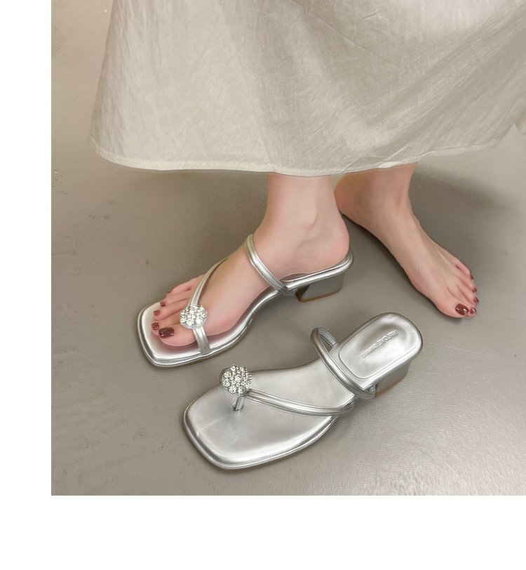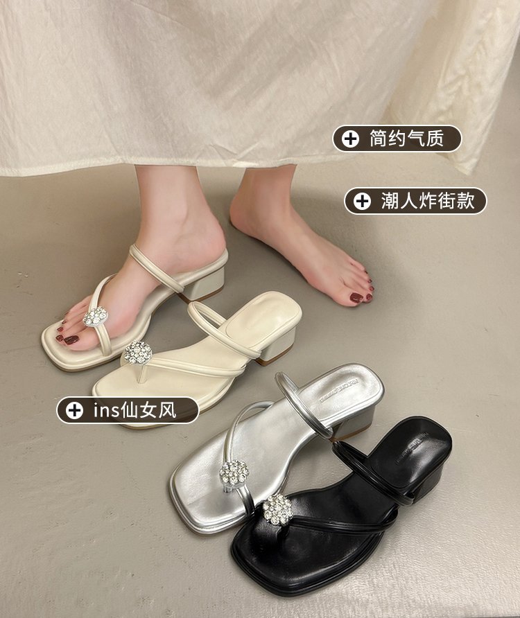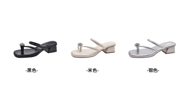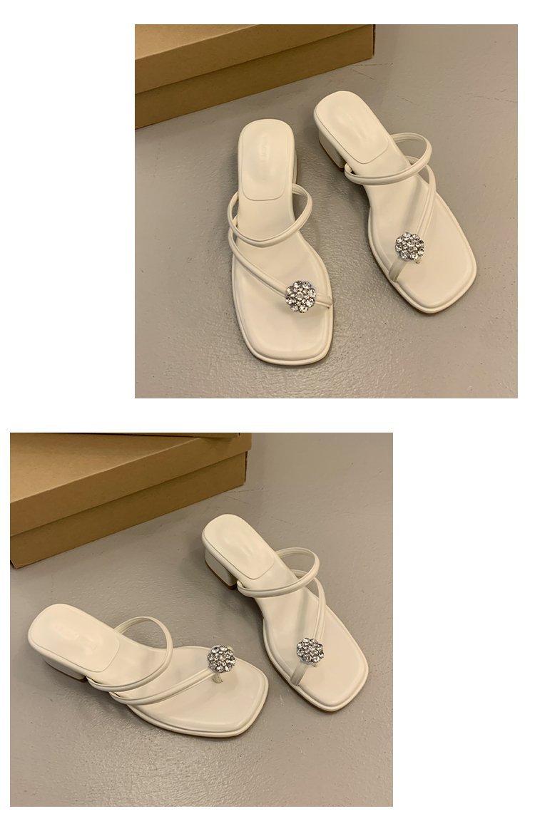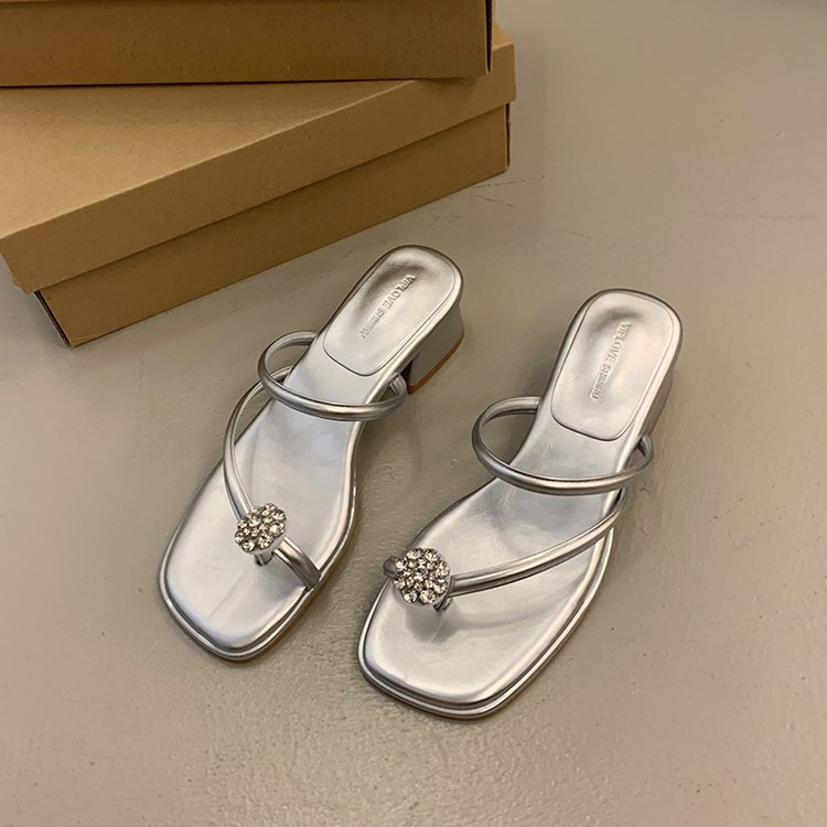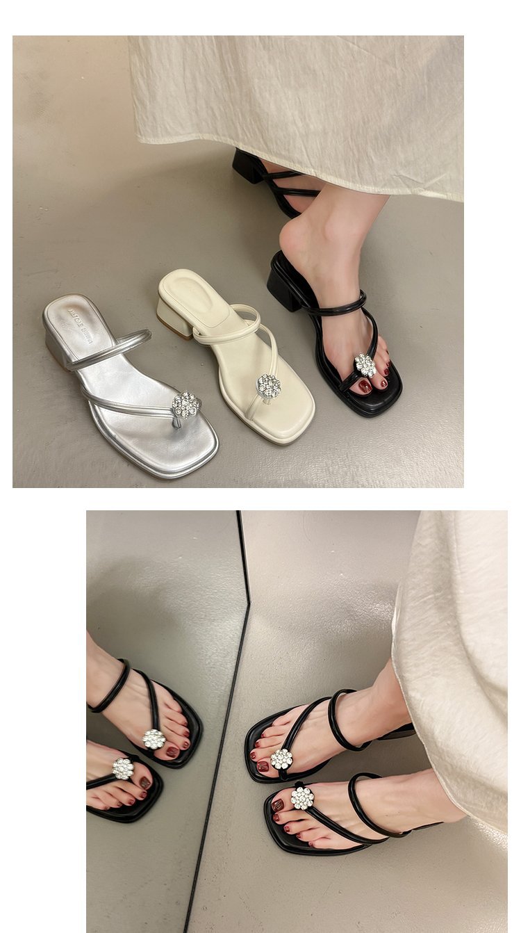 여름 아우터로 착용할 수 있는 여성용 프렌치 두꺼운 굽 라인스톤 아름다운 하이힐 샌들 2025 새로운 패션 스커트 샌들 로마 신발스토어 가기