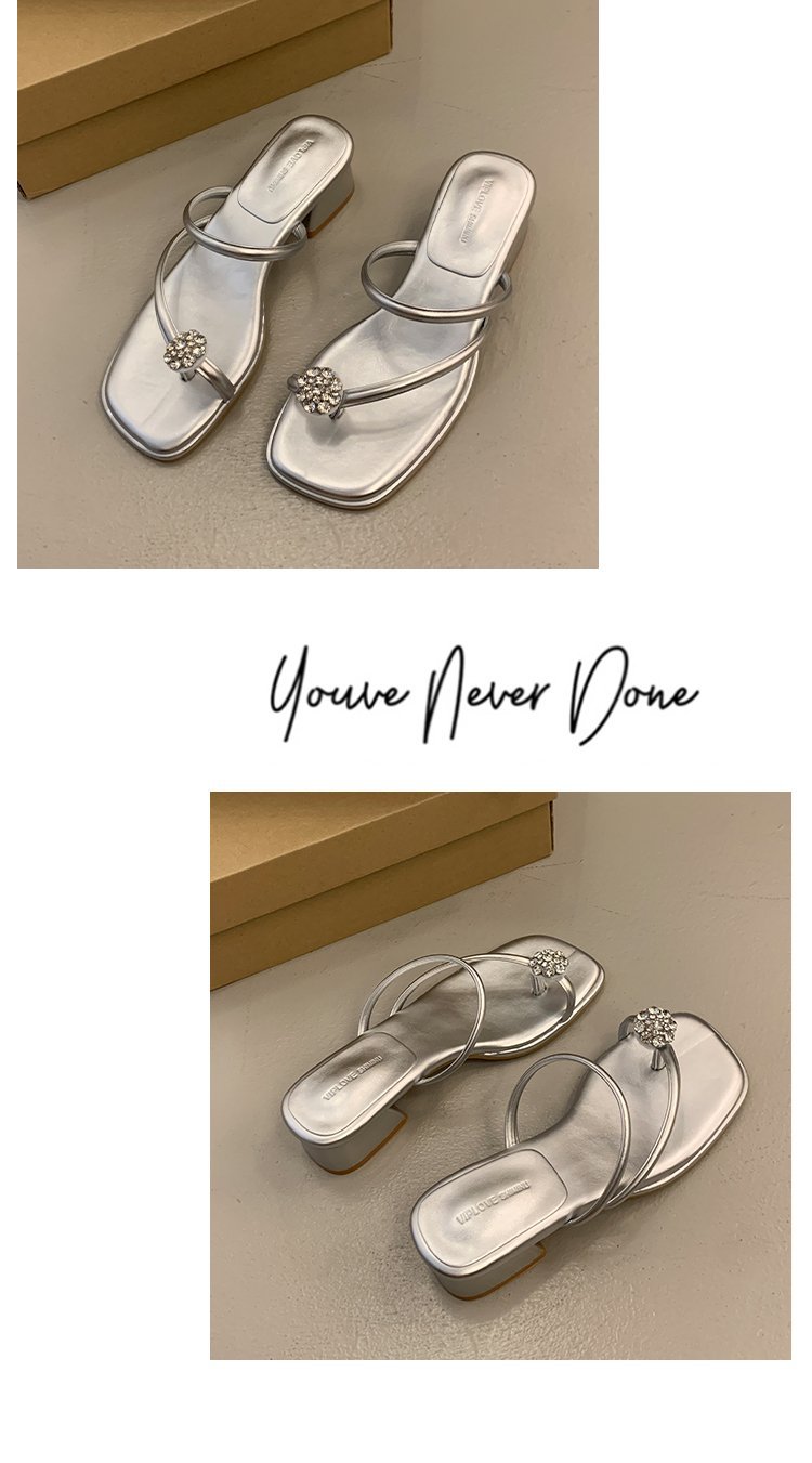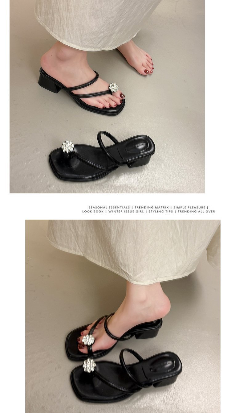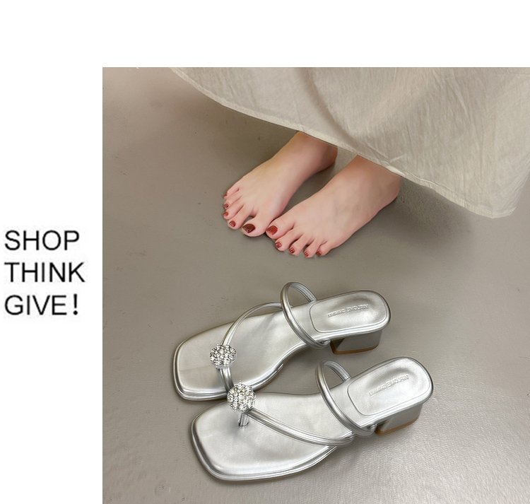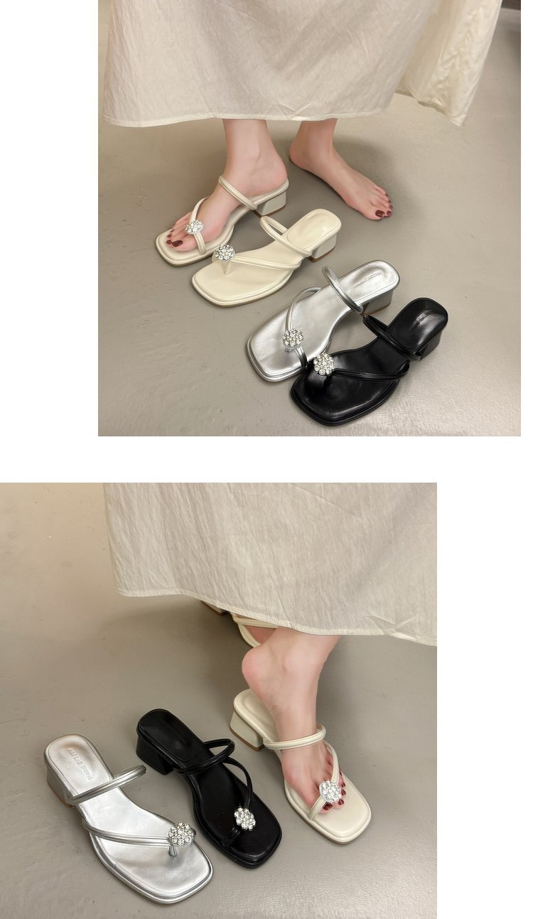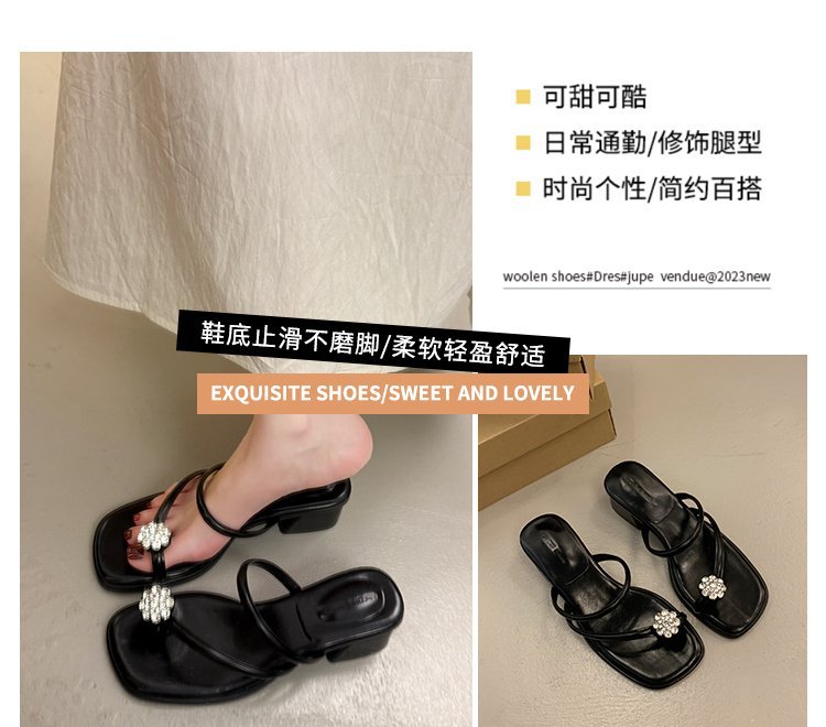 여름 아우터로 착용할 수 있는 여성용 프렌치 두꺼운 굽 라인스톤 아름다운 하이힐 샌들 2025 새로운 패션 스커트 샌들 로마 신발스토어 가기