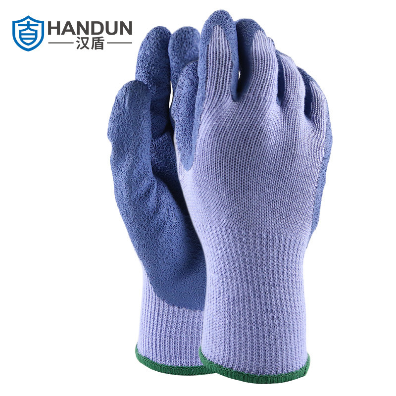 Handun HD-GP5061 내마모성 미끄럼 방지 폴리에스테르 면 라텍스 주름 코팅 보호 장갑
