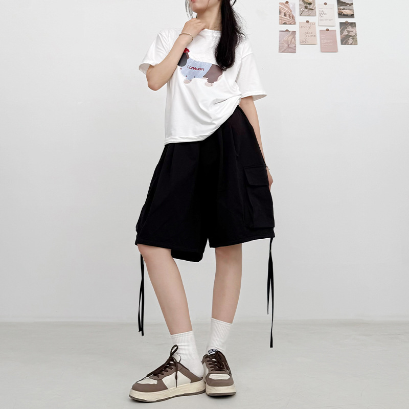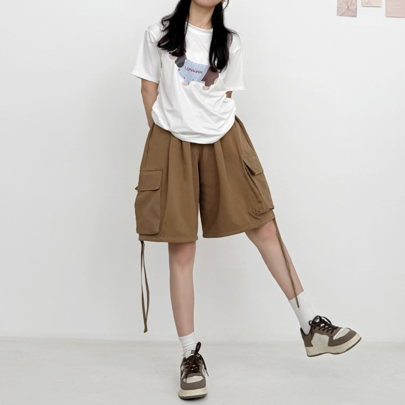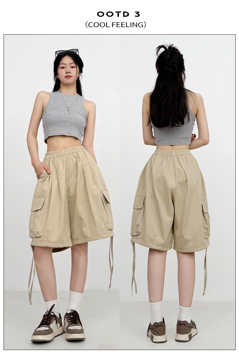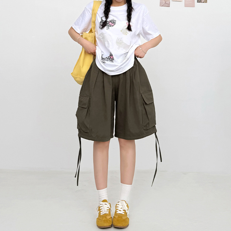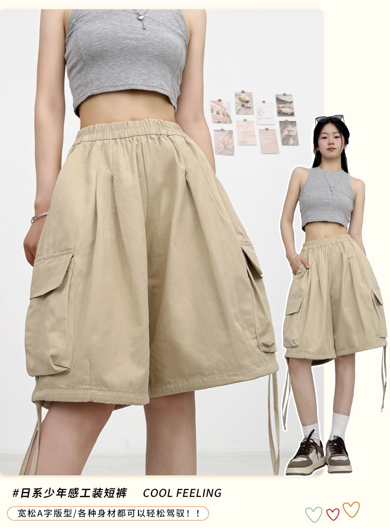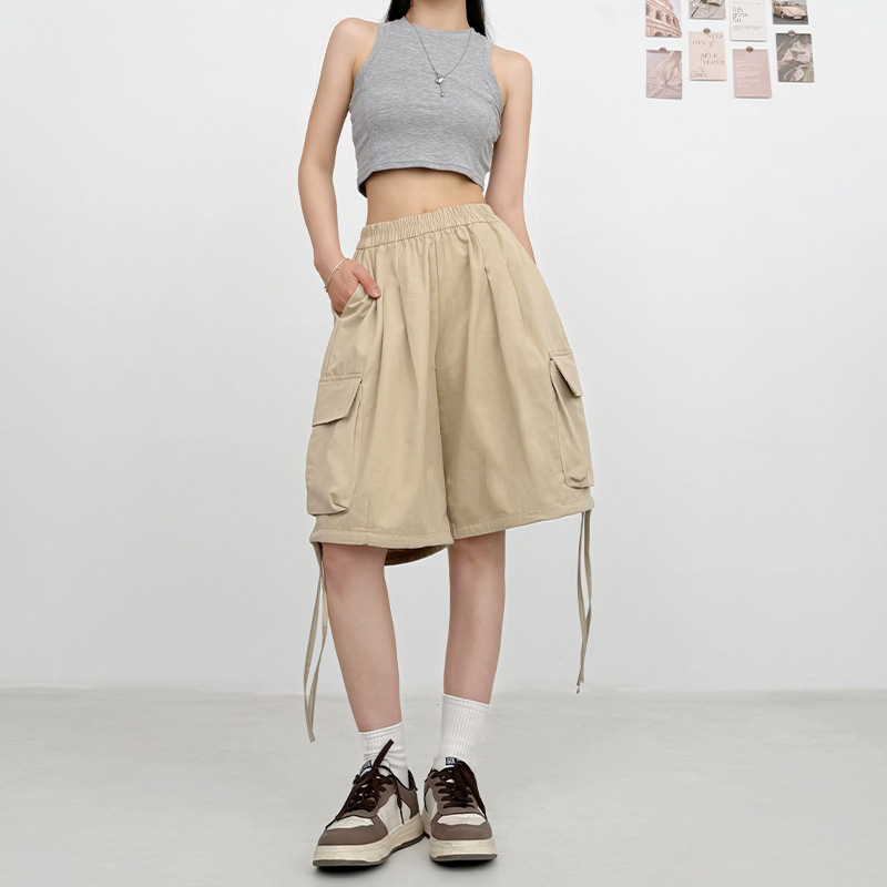 여름 여성용 아메리칸 레트로 유니섹스 스타일 카고 반바지, 청소년 스타일 루즈한 미드팬츠, 포켓 캐주얼 스포츠 5부 팬츠스토어 가기
