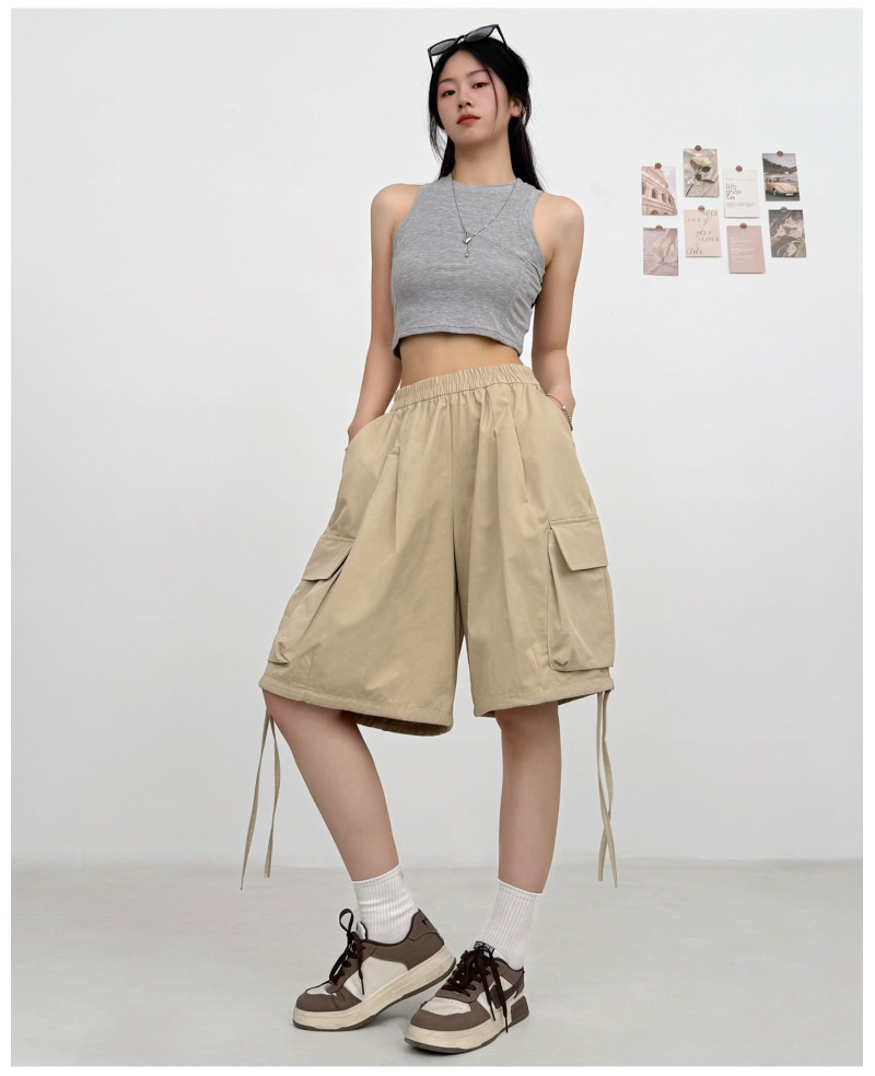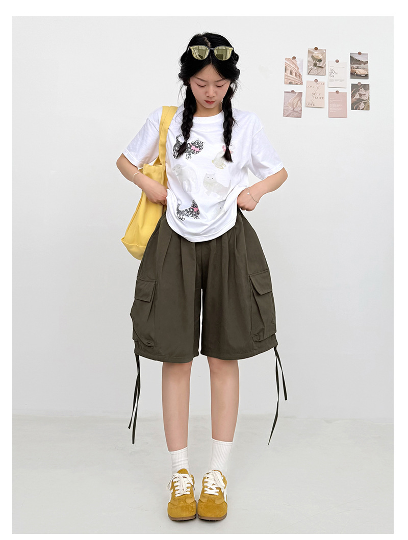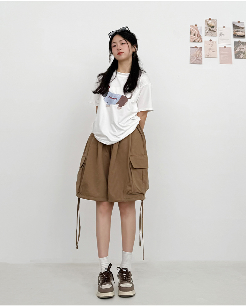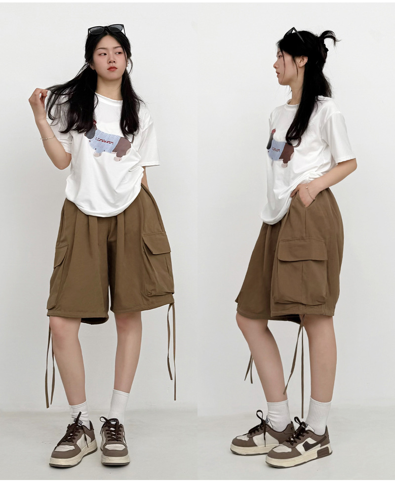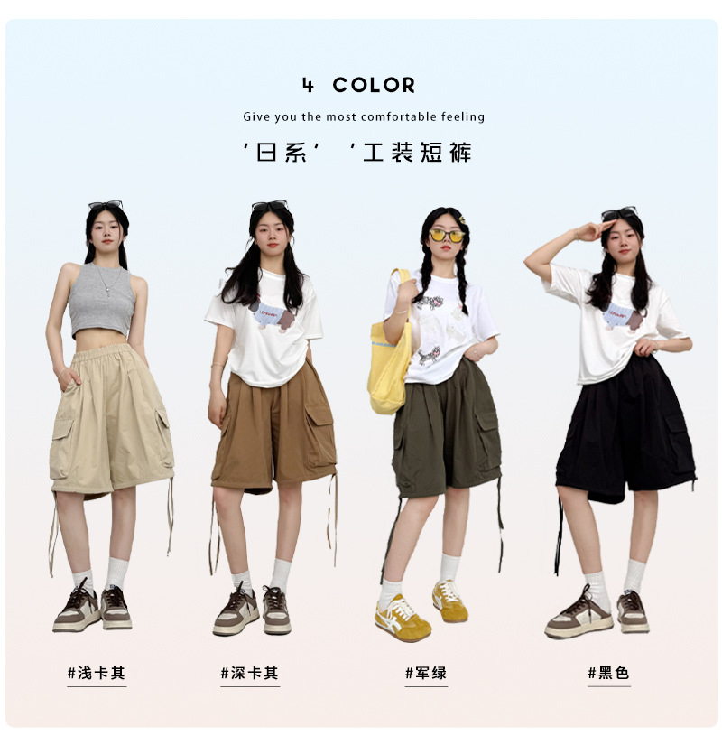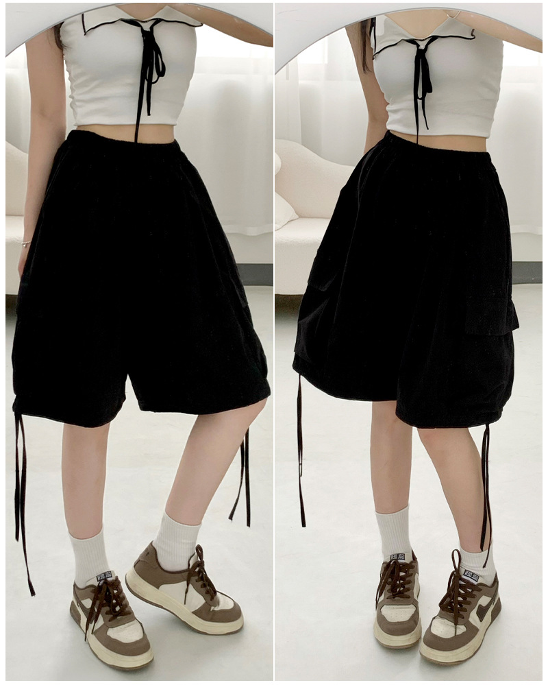 여름 여성용 아메리칸 레트로 유니섹스 스타일 카고 반바지, 청소년 스타일 루즈한 미드팬츠, 포켓 캐주얼 스포츠 5부 팬츠스토어 가기