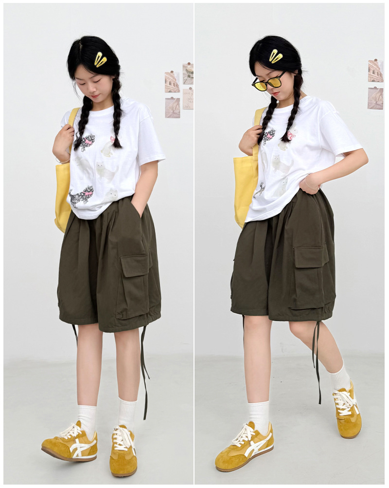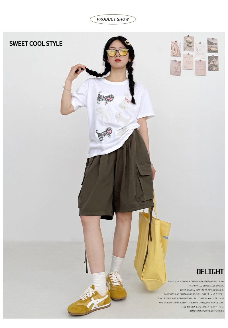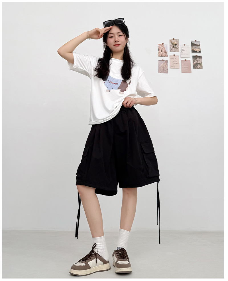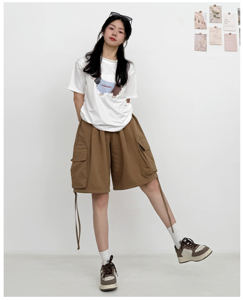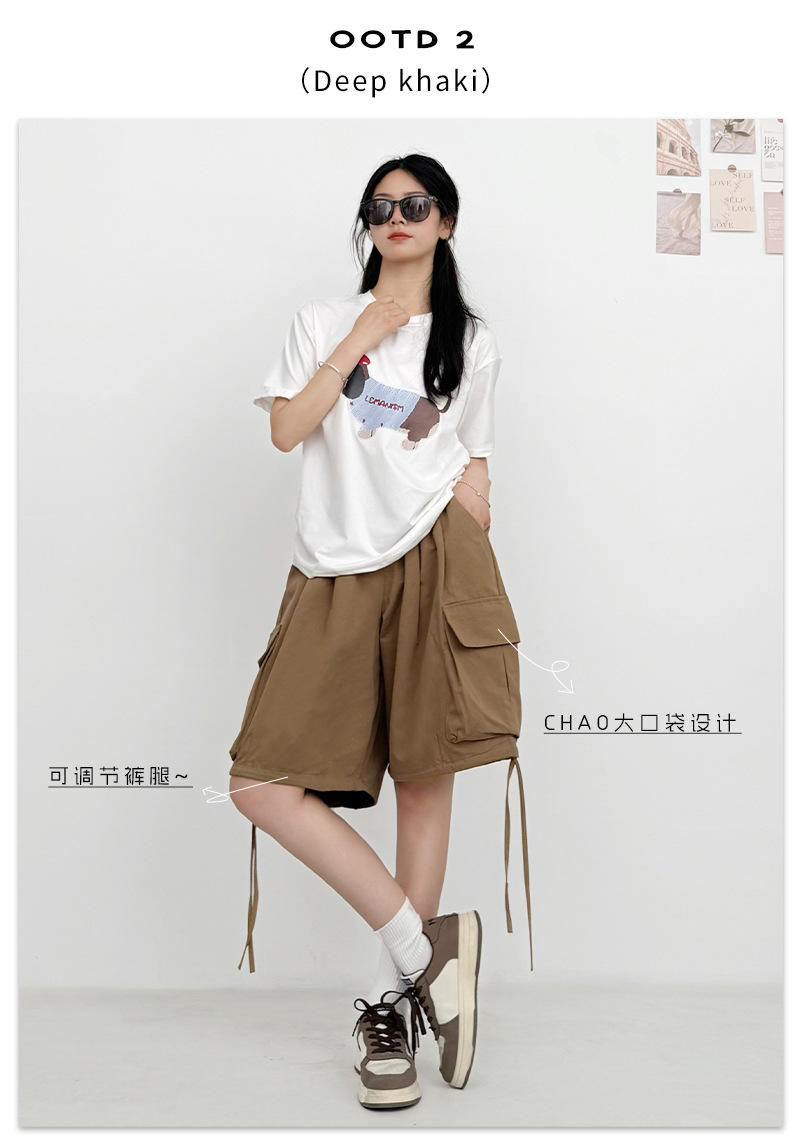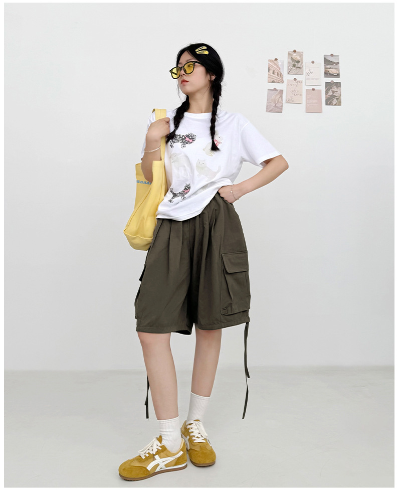 여름 여성용 아메리칸 레트로 유니섹스 스타일 카고 반바지, 청소년 스타일 루즈한 미드팬츠, 포켓 캐주얼 스포츠 5부 팬츠스토어 가기