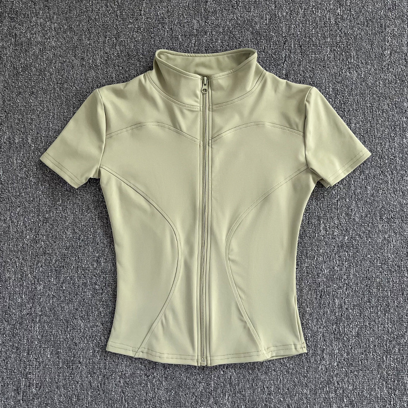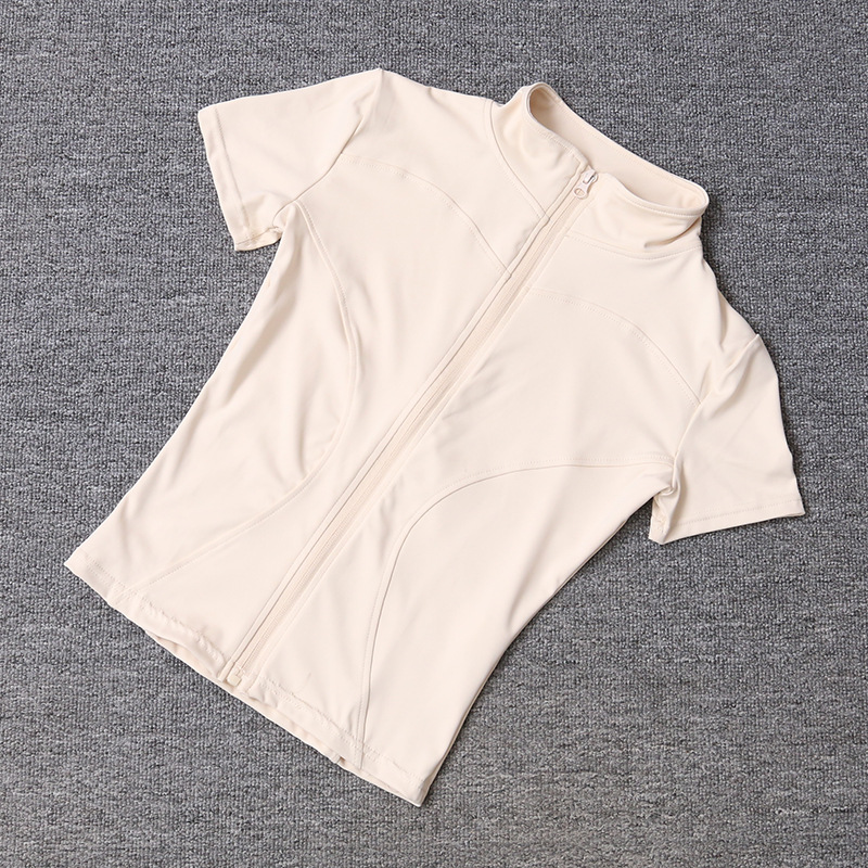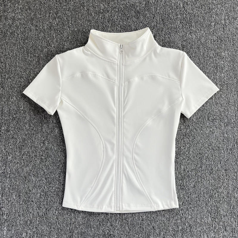 요가 의류 여성용 타이트 티셔츠 스포츠 반팔 러닝 트레이닝 필라테스 스탠드 칼라 지퍼 피트니스 의류 재킷 봄, 여름스토어 가기