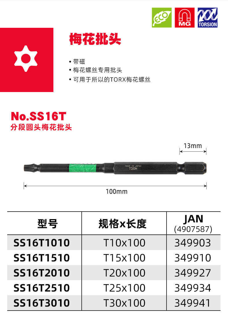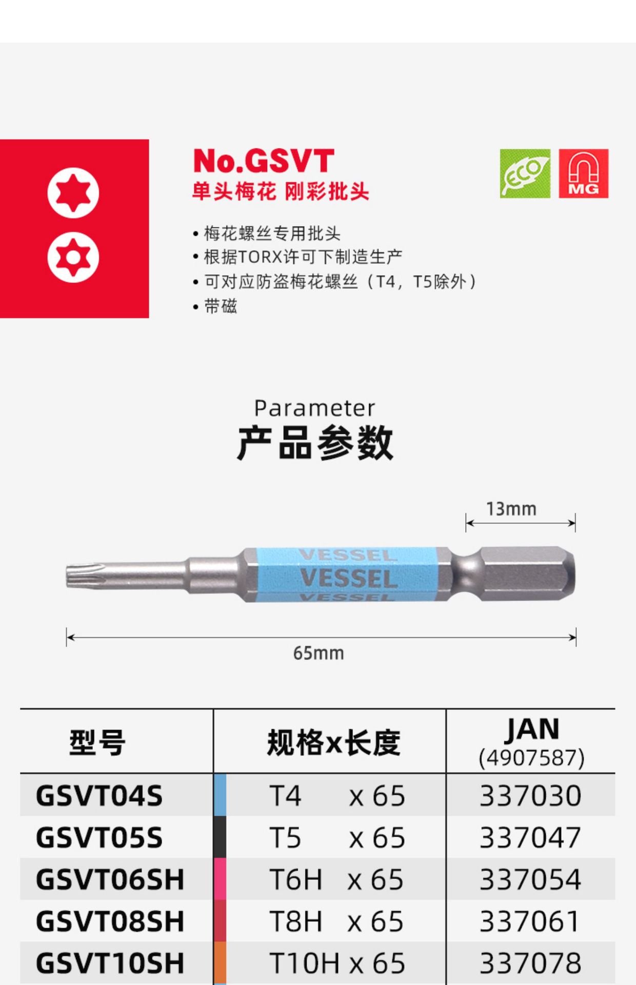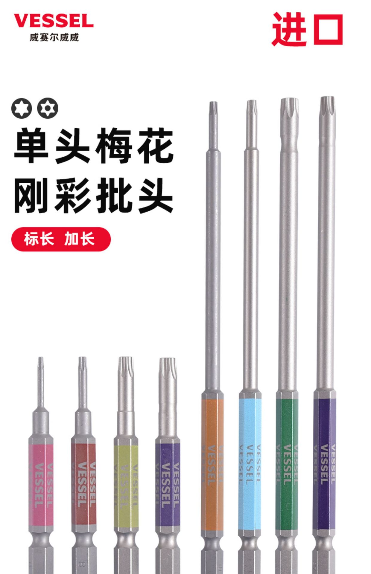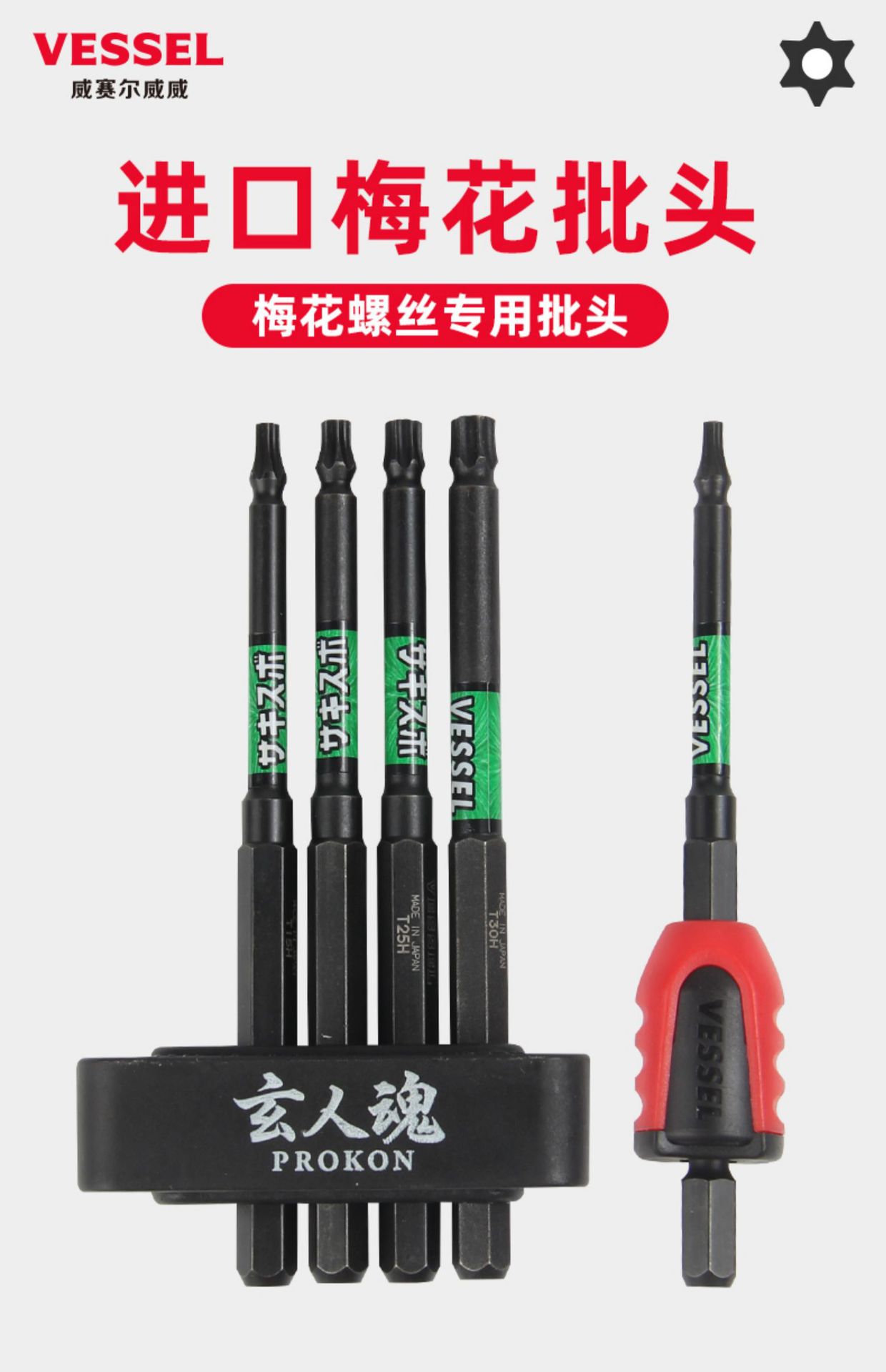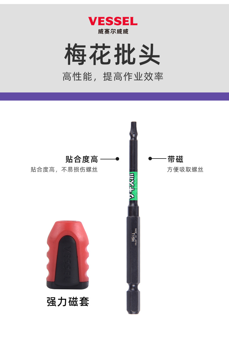 VESSEL 매화 비트 일본에서 수입된 구멍 포함 Weiwei 강력한 자기 확장 육각형 별 모양 T8T10T15T20T25스토어 가기