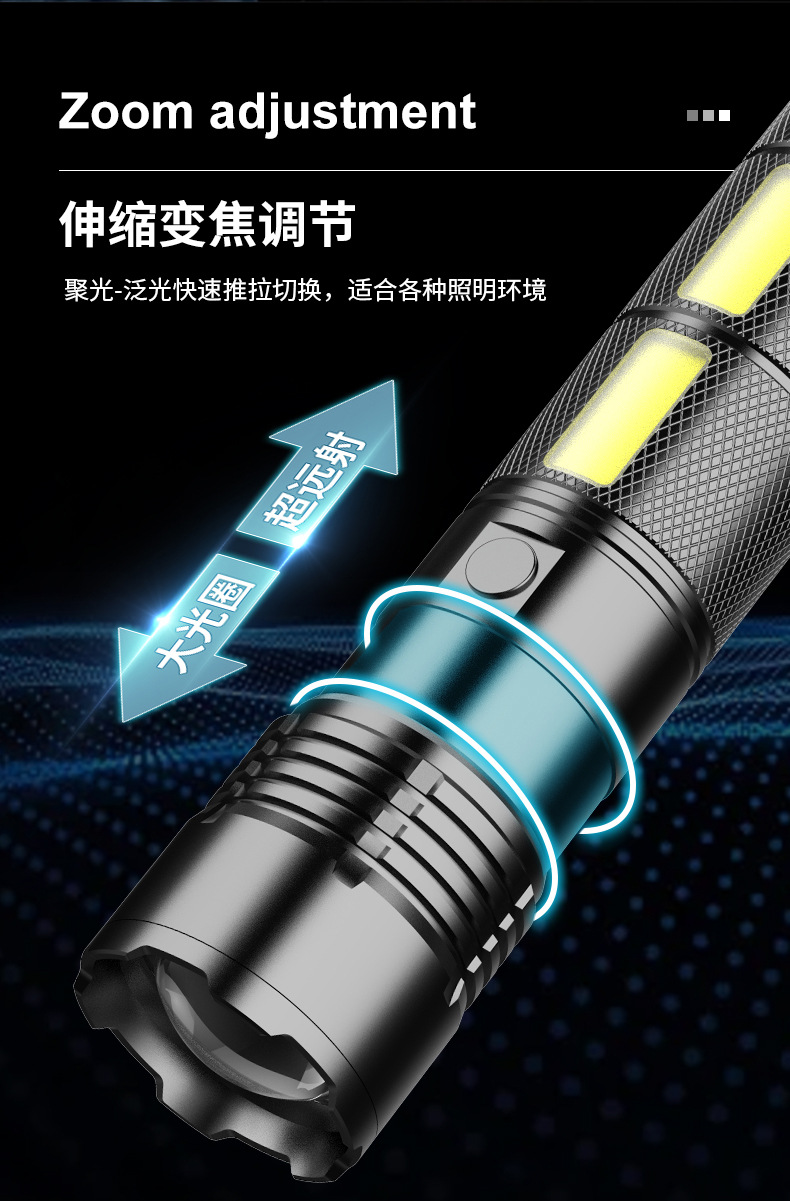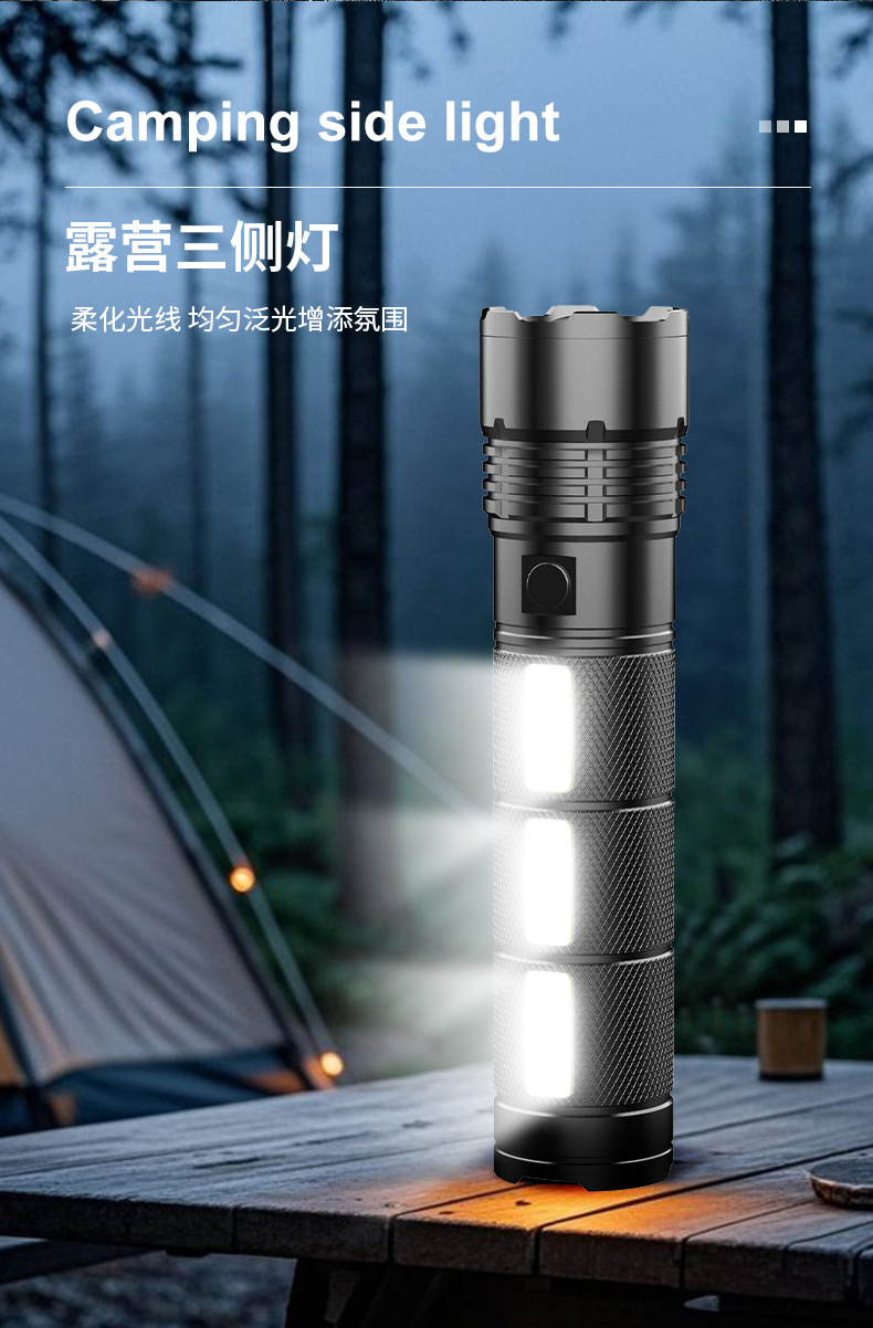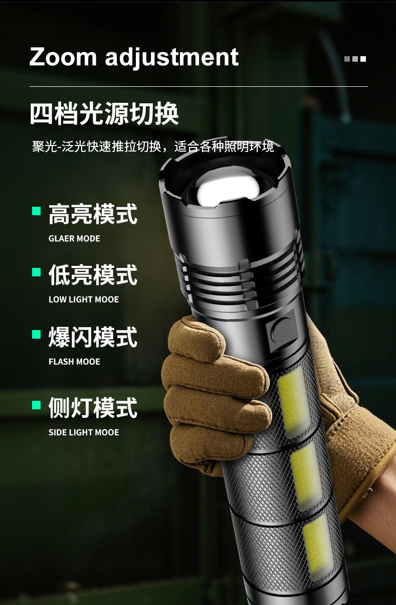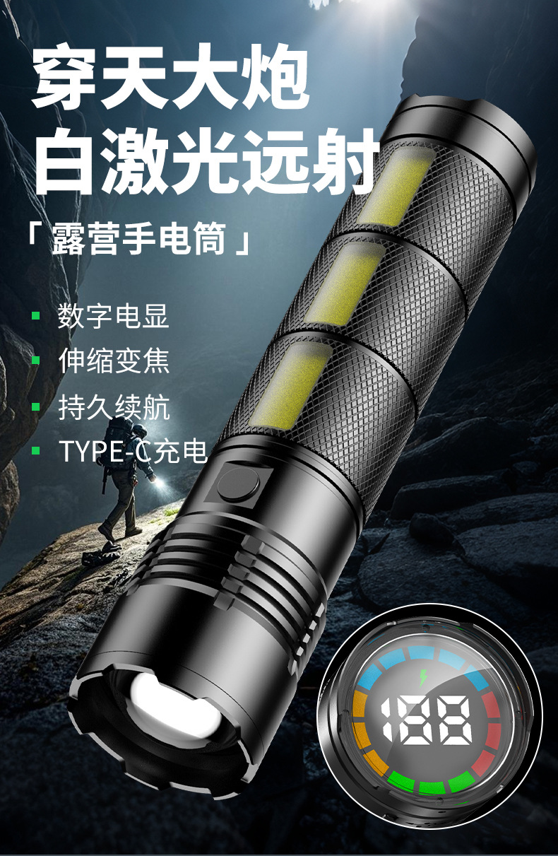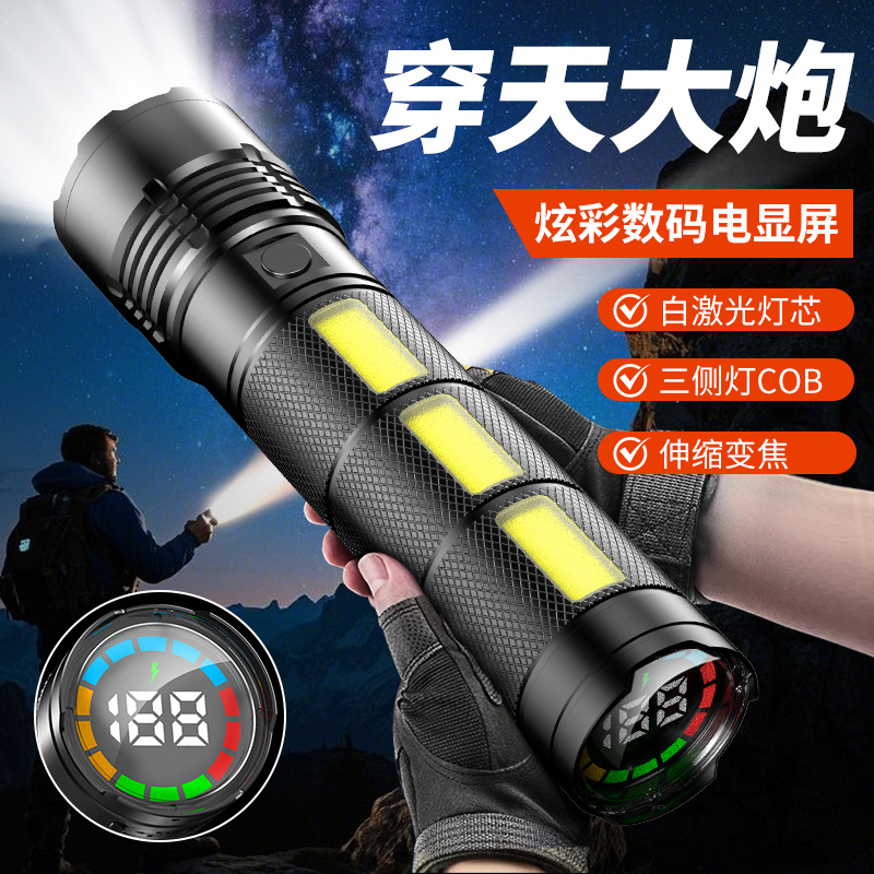 강한 빛 손전등 3 COB 측면 조명 야외 조명 작업 조명 텔레스코픽 줌 다채로운 디지털 디스플레이 손전등