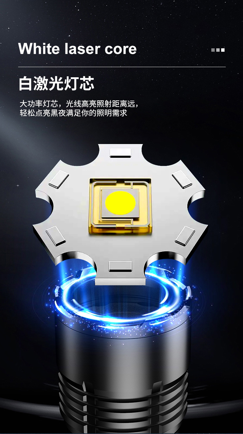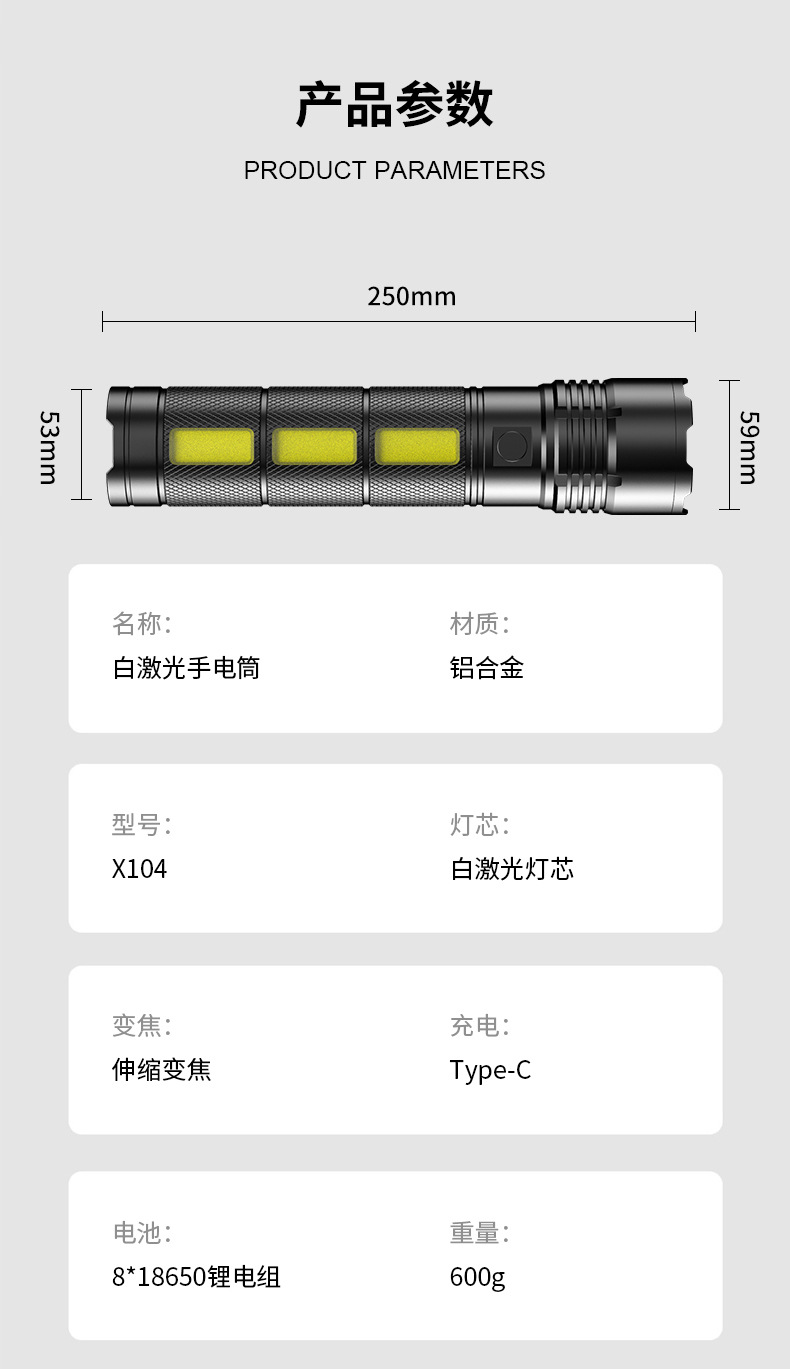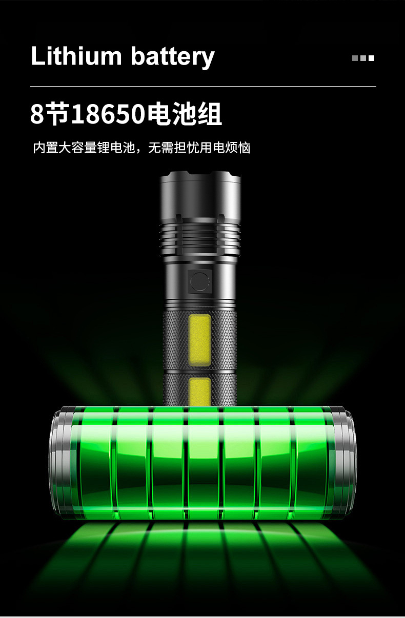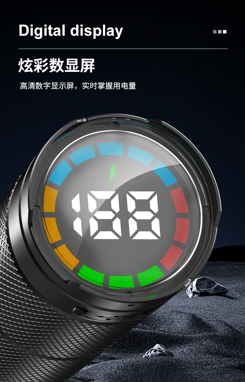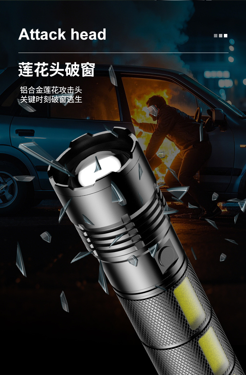강한 빛 손전등 3 COB 측면 조명 야외 조명 작업 조명 텔레스코픽 줌 다채로운 디지털 디스플레이 손전등