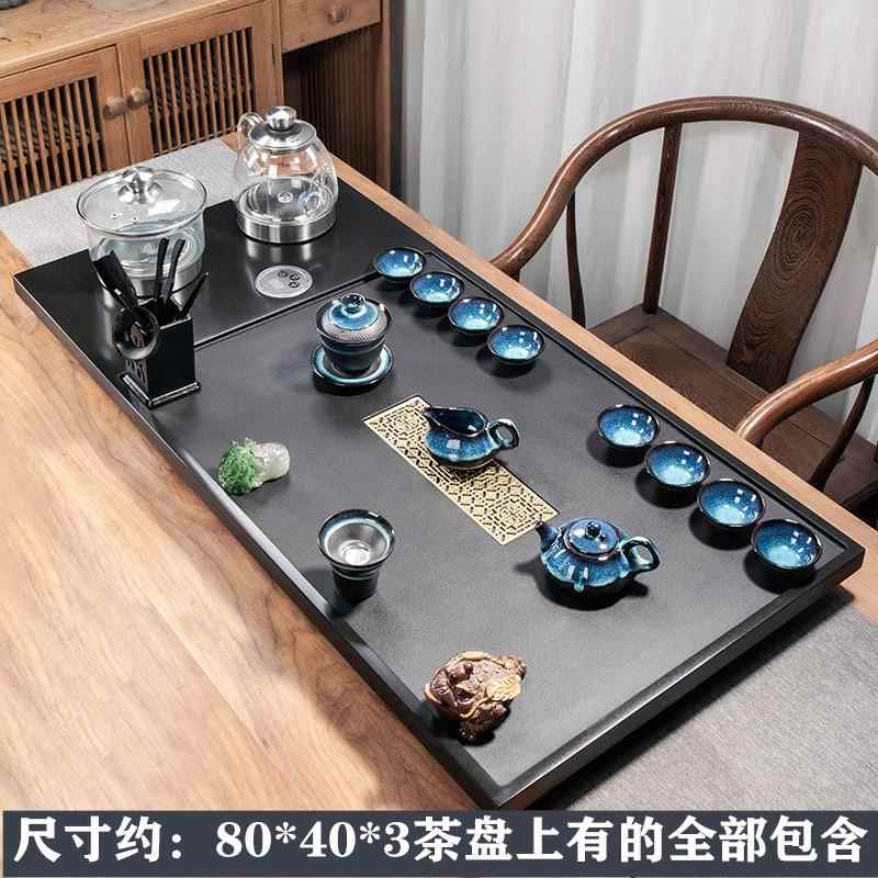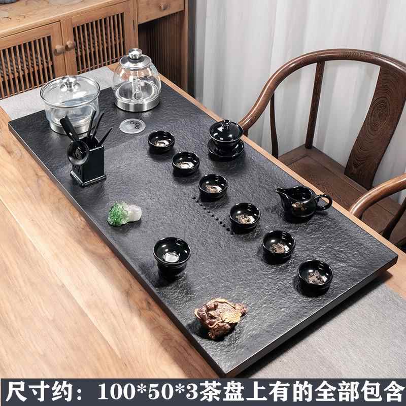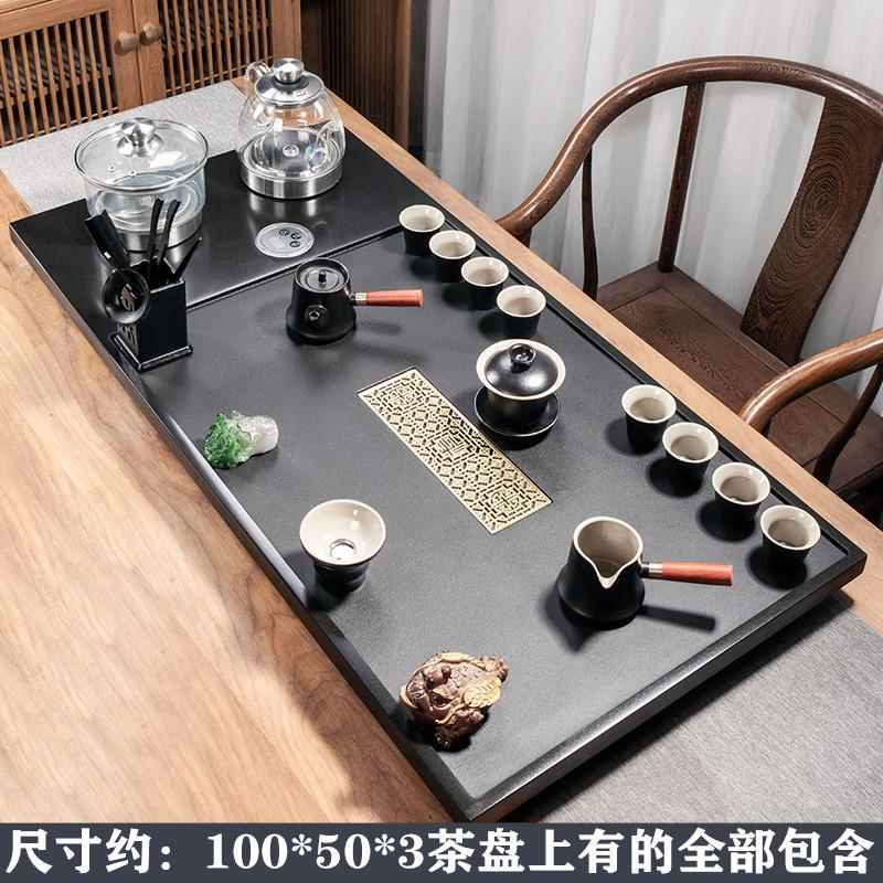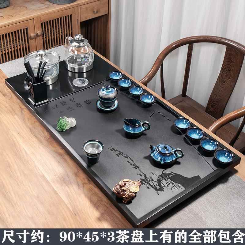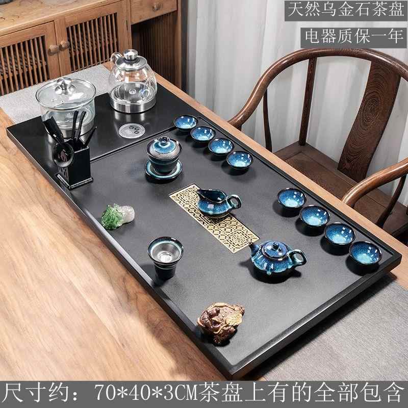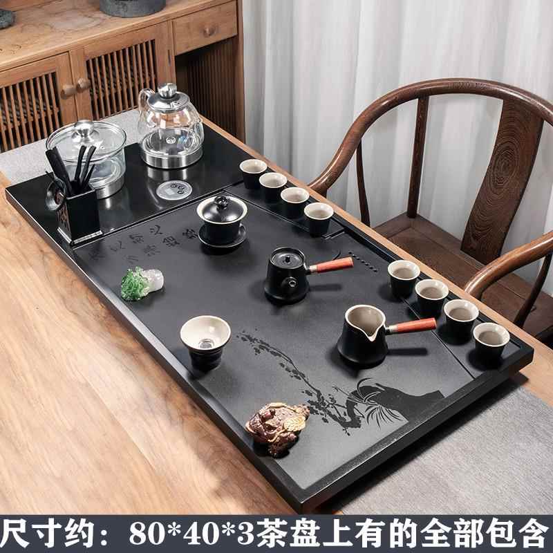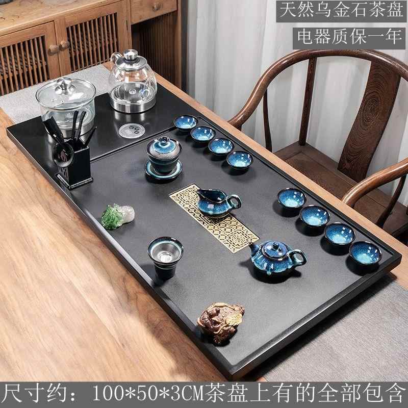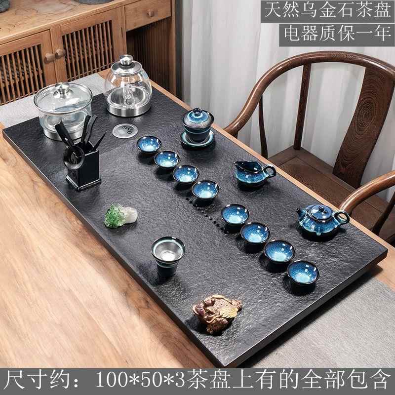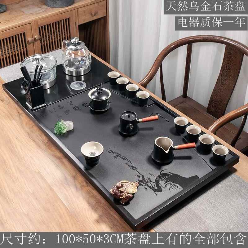 천연 흑금석 티 트레이 티 세트 자동 전기 물 끓이기 통합 전자기 오븐 스톤 티 테이블 홈 티 오션스토어 가기