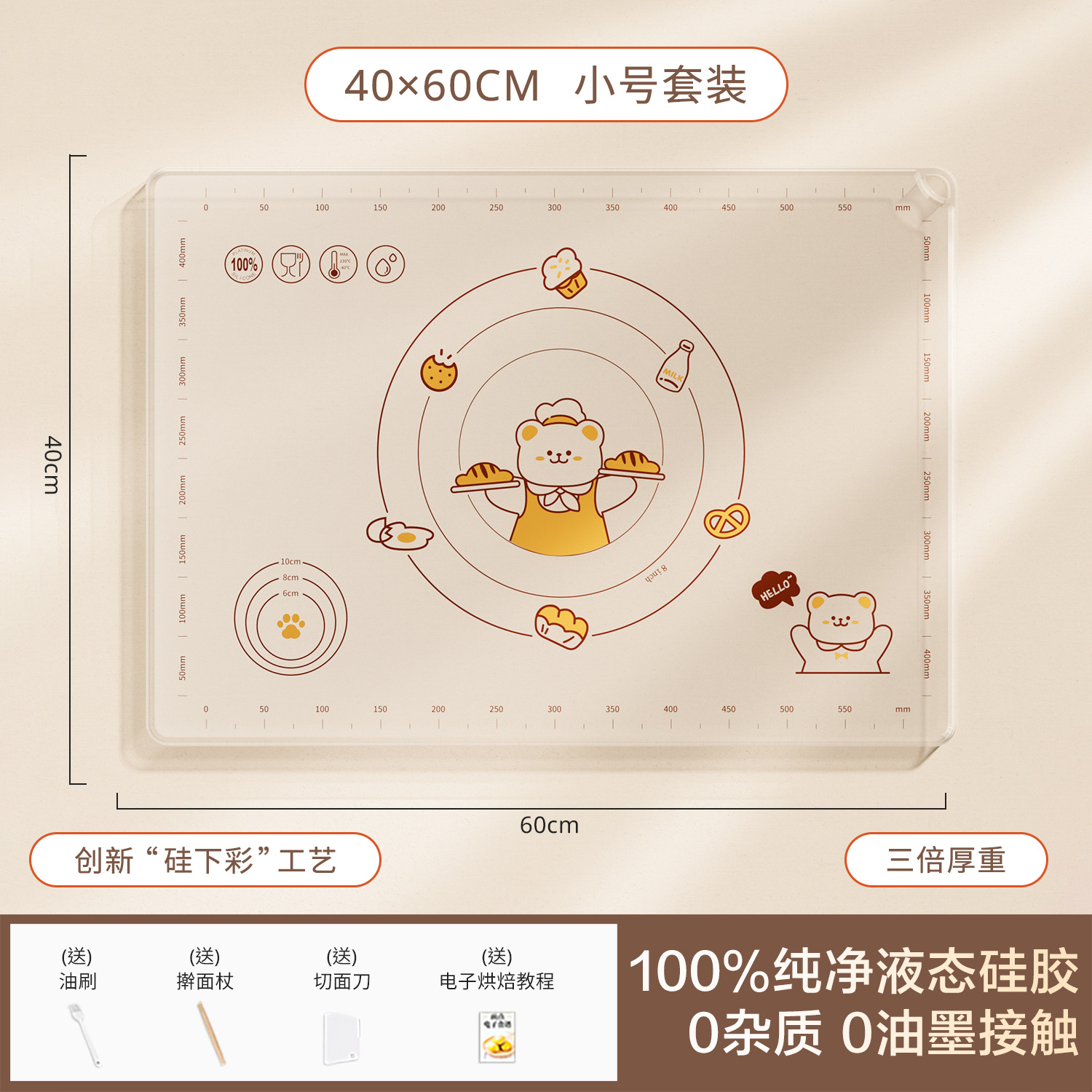 실리콘 반죽 매트 식품 등급 및 패널 두꺼운 미끄럼 방지 가정용 롤링 매트 파스타 베이킹 도구
