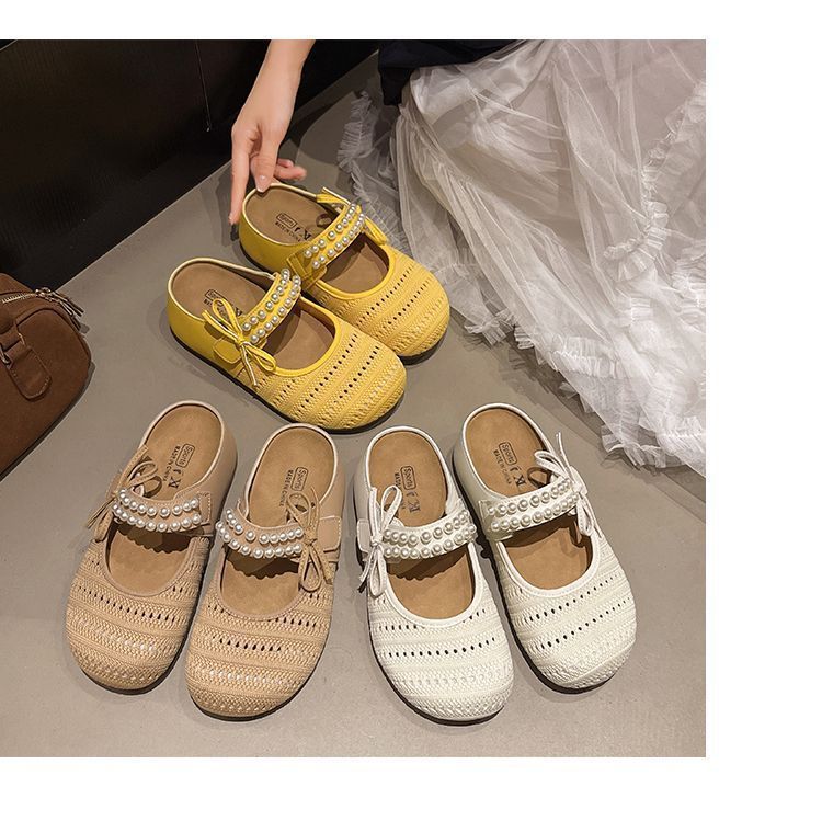프렌치 메리 제인 하이 슈즈 2025 신상 여름 아우터 메쉬 통기성 발가락 슬리퍼 여성용 두꺼운 밑창스토어 가기