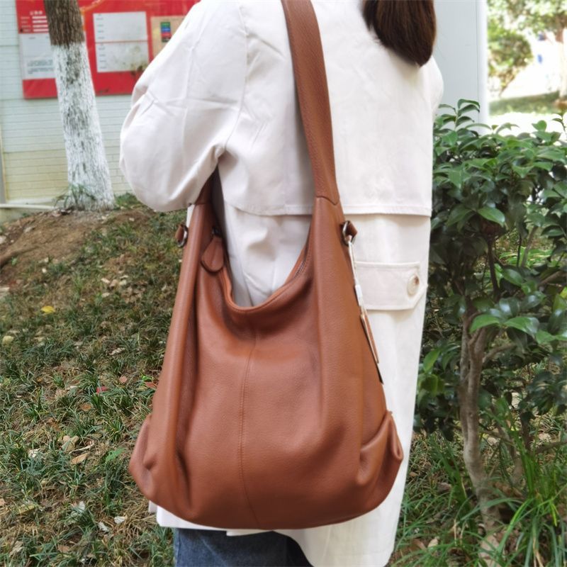 순수 가죽 게으른 정품 가죽 여성용 가방 싱글 숄더 크로스 바디 백 대용량 캐주얼 다목적 부드러운 소 가죽 토트 백스토어 가기