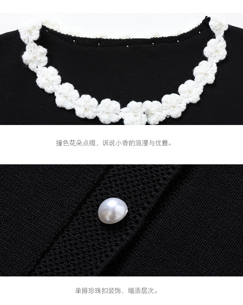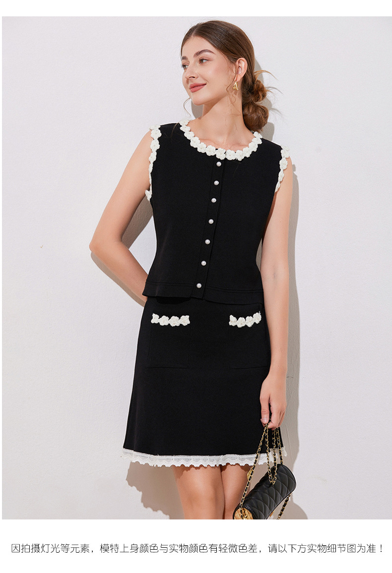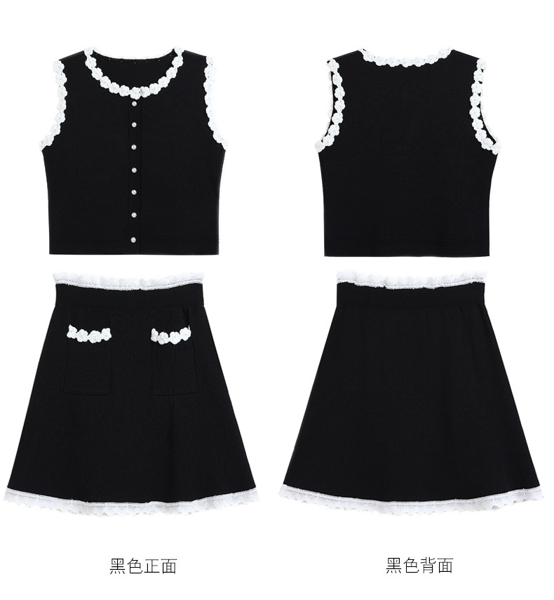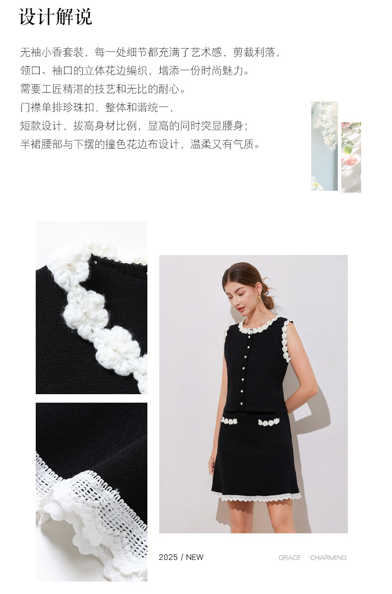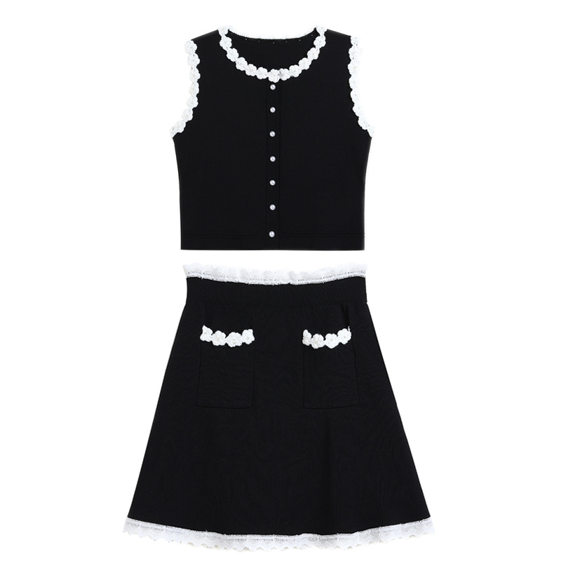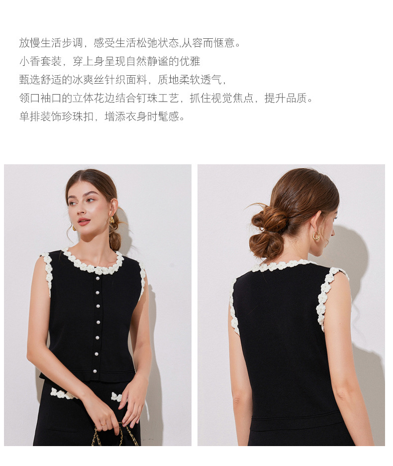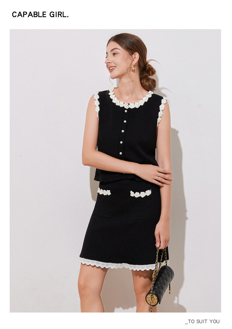 새로운 여름 스타일 크로 셰 뜨개질 탑, 구슬 장식 민소매 니트 조끼, 작은 향기로운 여성 투피스 스커트