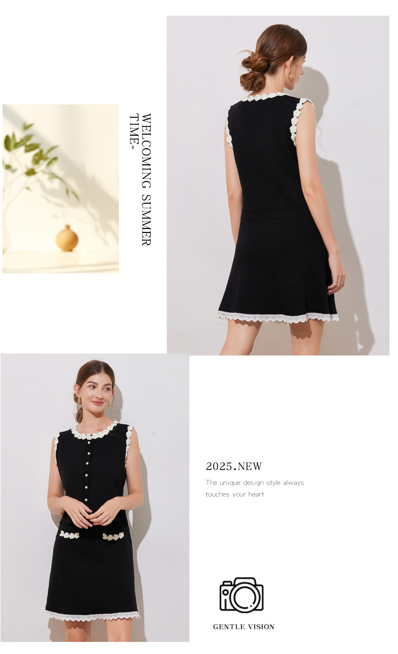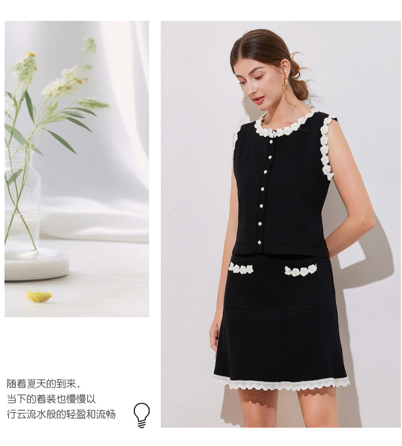 새로운 여름 스타일 크로 셰 뜨개질 탑, 구슬 장식 민소매 니트 조끼, 작은 향기로운 여성 투피스 스커트스토어 가기