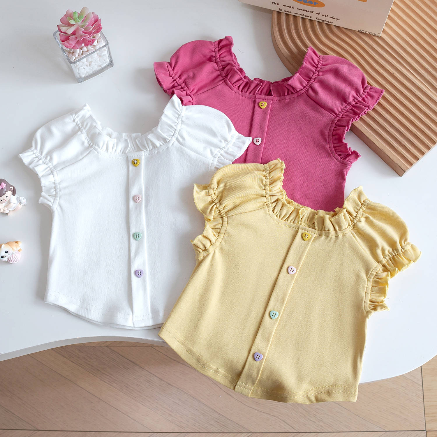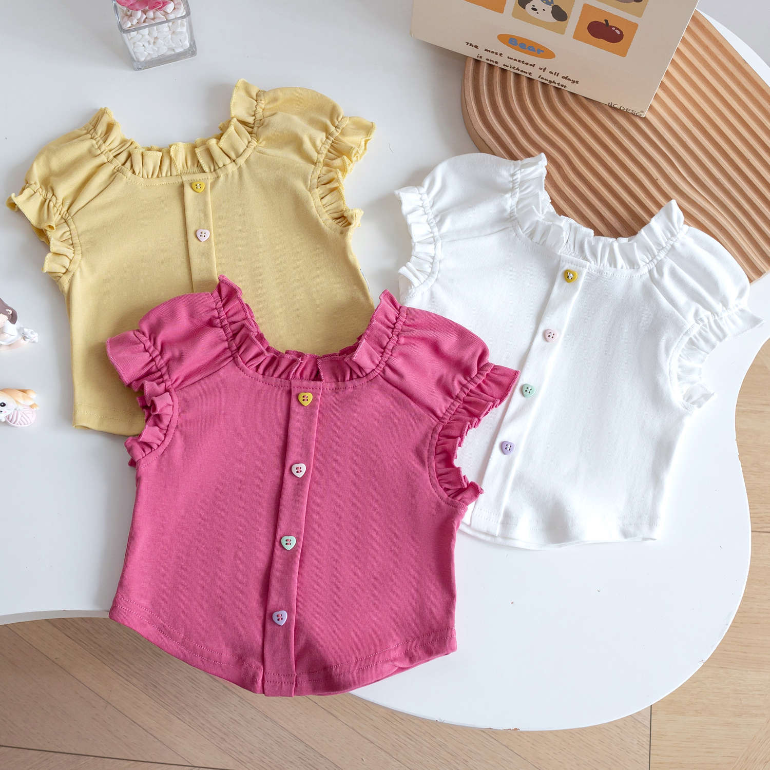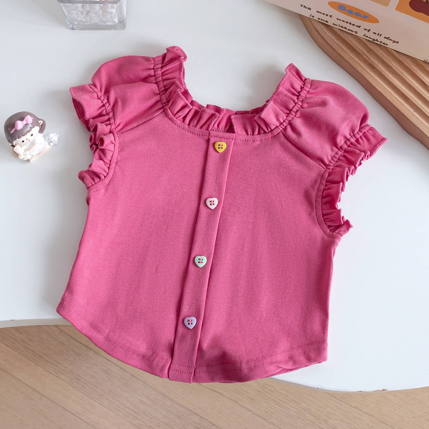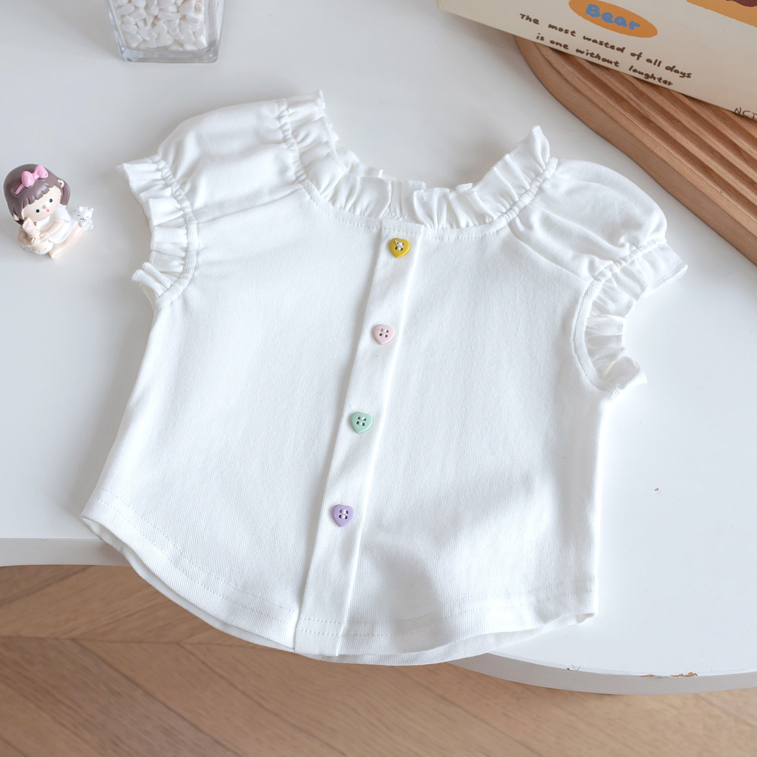 여자 반팔 2025 새로운 스타일 아기 소녀 여름 스타일 아동상의 여름 아기 레이스 조끼 반팔 t