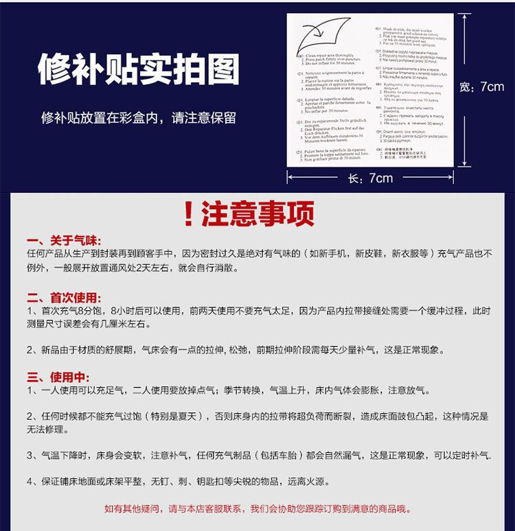 • 두꺼운 침대 + 수리 키트(무료 일반 풋 펌프)
