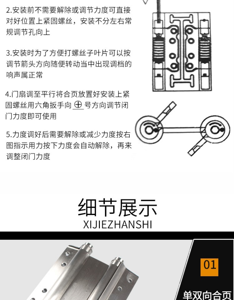 스테인레스 스틸 자동 도어 클로저 스프링 양방향 무료 도어 입구 및 출구 리바운드 이중 개방형 내부 및 외부 도어 힌지