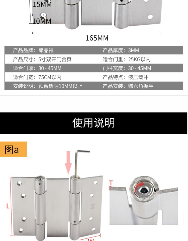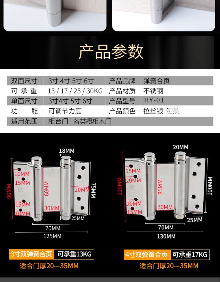 스테인레스 스틸 자동 도어 클로저 스프링 양방향 무료 도어 입구 및 출구 리바운드 이중 개방형 내부 및 외부 도어 힌지스토어 가기