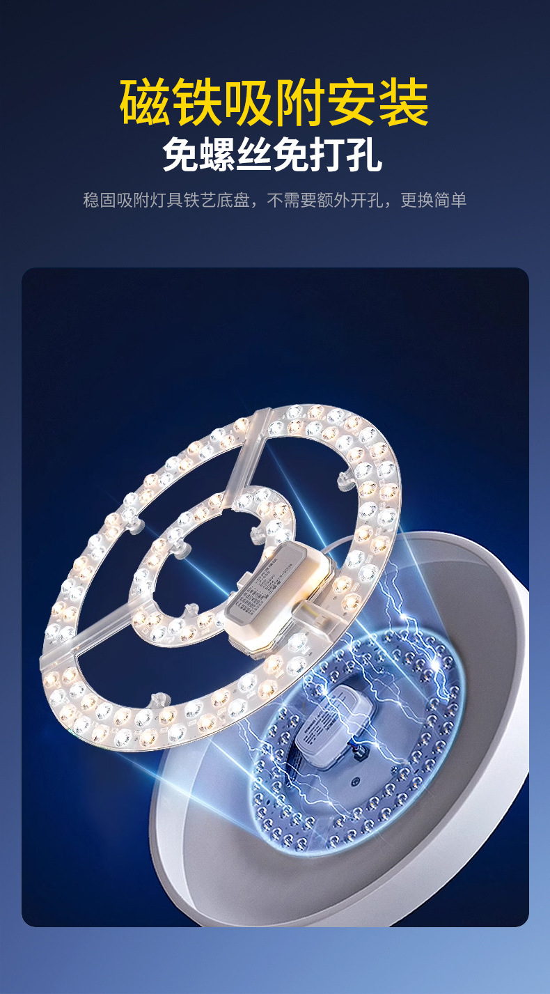 LED 라이트 패널 라운드 전체 스펙트럼 슈퍼 밝은 천장 조명 교체 심지 사각형 침실 에너지 절약 자기 광원 모듈