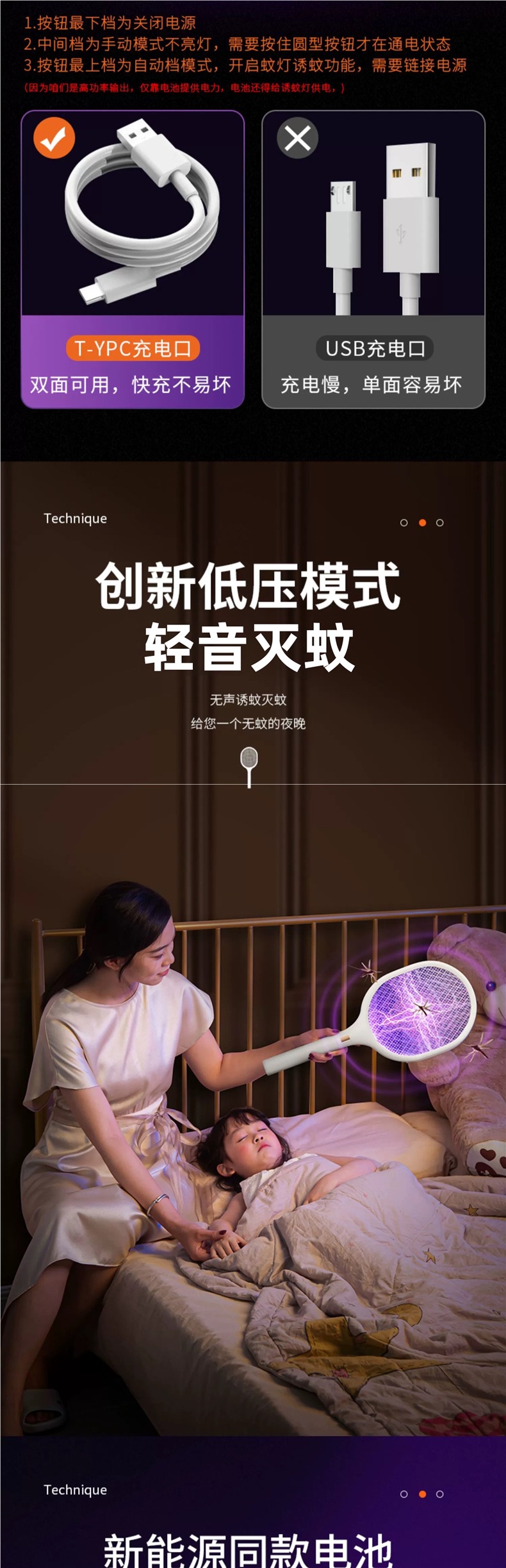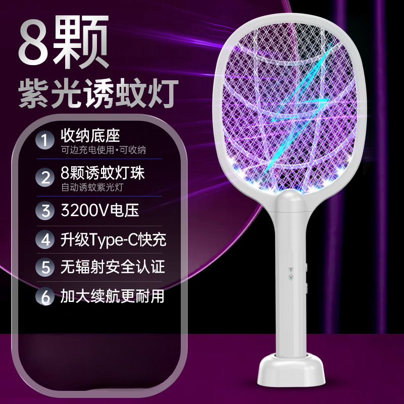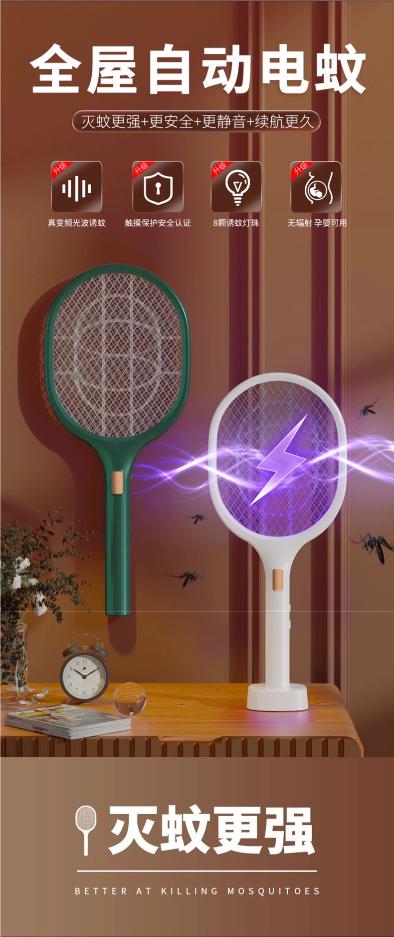 전기 모기채, 충전식 가정용 모기채, 모기 킬러 램프, 2-in-1 전기 파리 모기채
