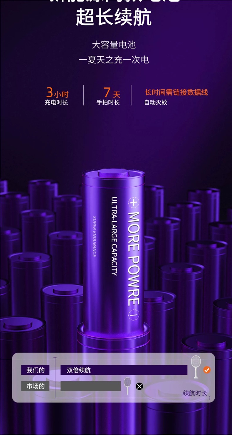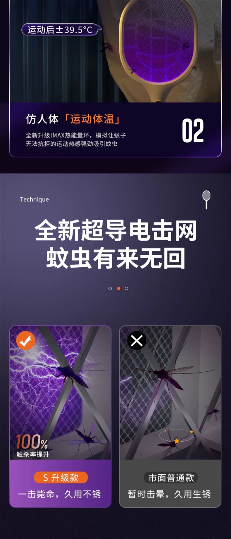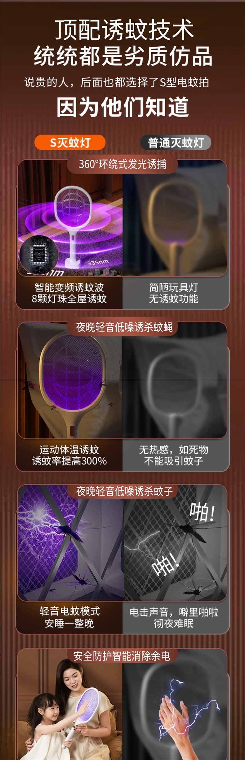 전기 모기채, 충전식 가정용 모기채, 모기 킬러 램프, 2-in-1 전기 파리 모기채