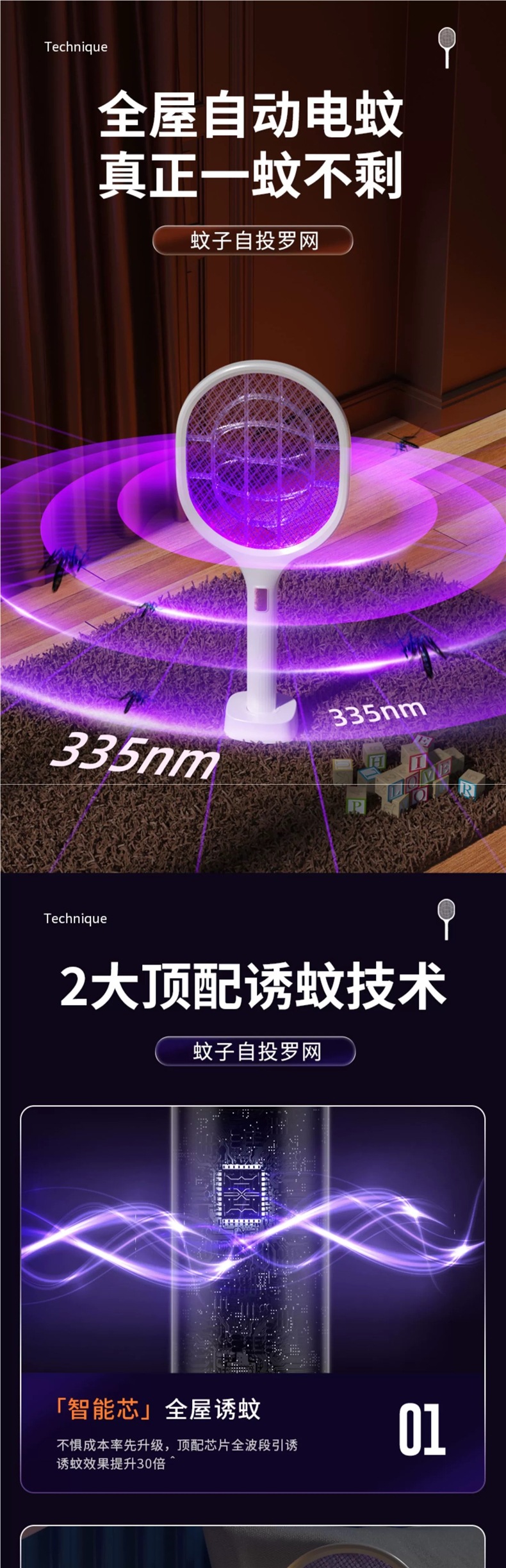 전기 모기채, 충전식 가정용 모기채, 모기 킬러 램프, 2-in-1 전기 파리 모기채스토어 가기