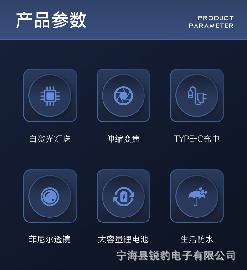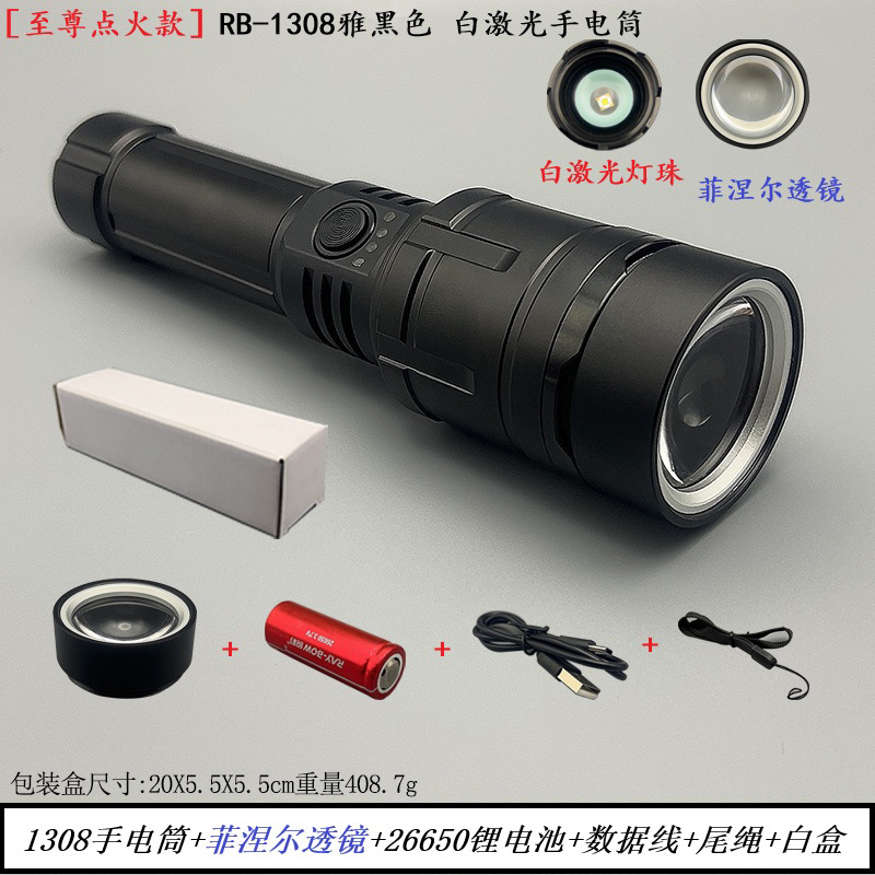 • [최고 포인트 모델] RB-1308 우아한 검정색 흰색 레이저 손전등 + 프레넬 렌즈 + 26650 리튬 배터리 + 데이터 케이블 + 흰색 상자
