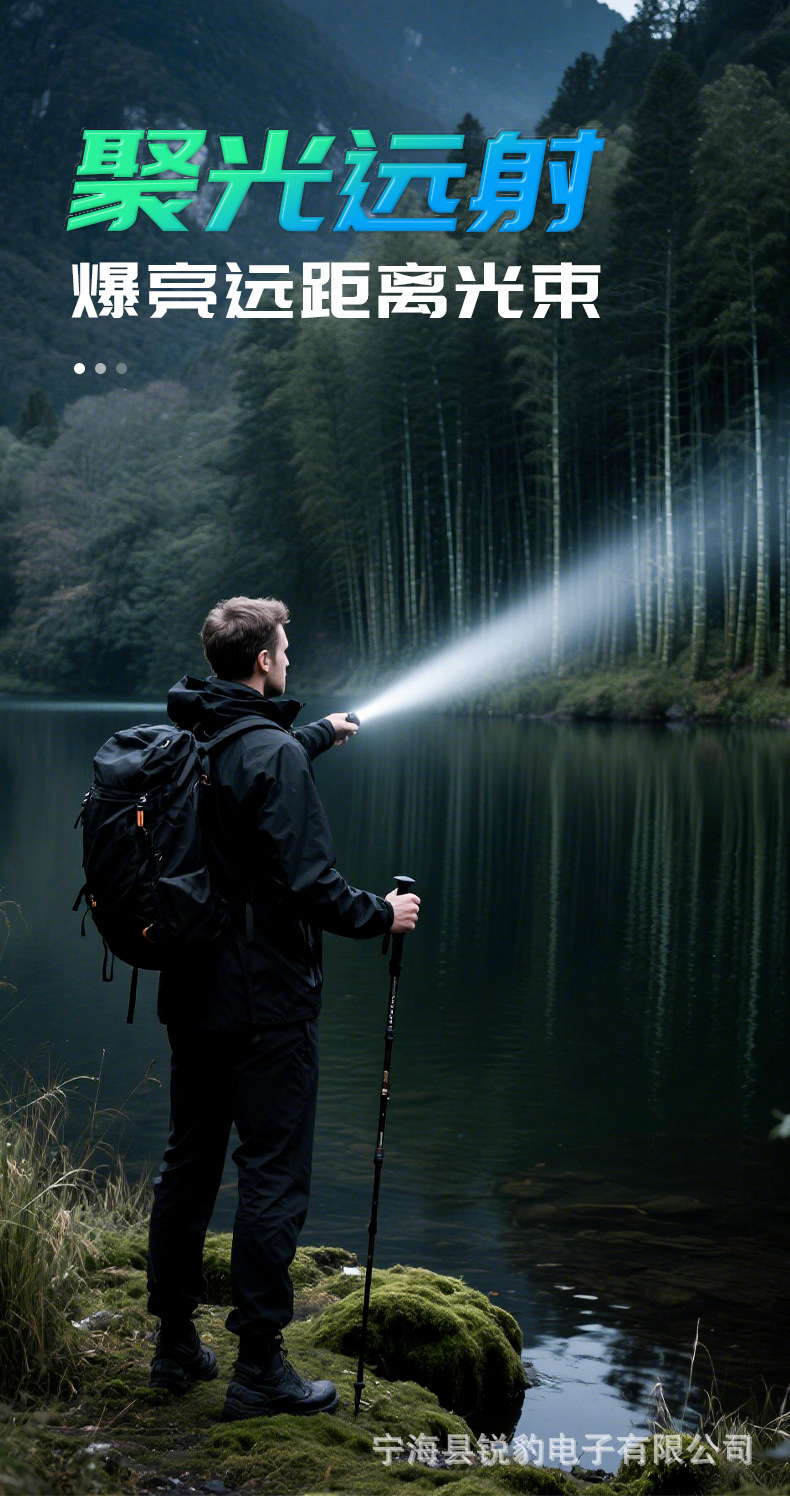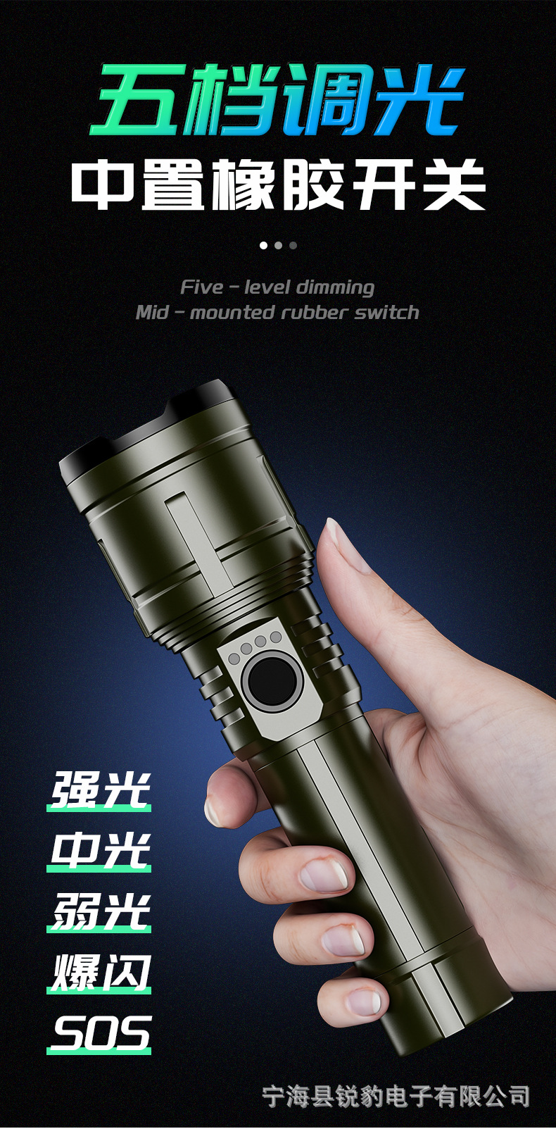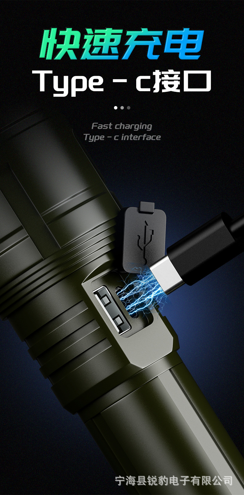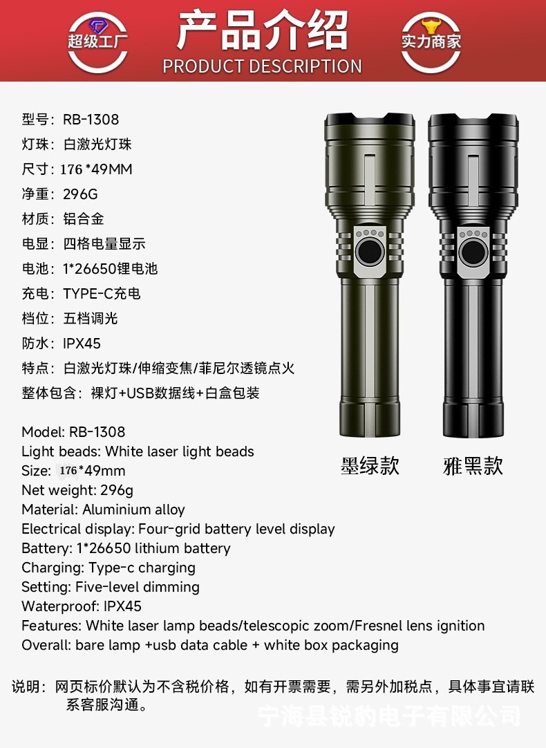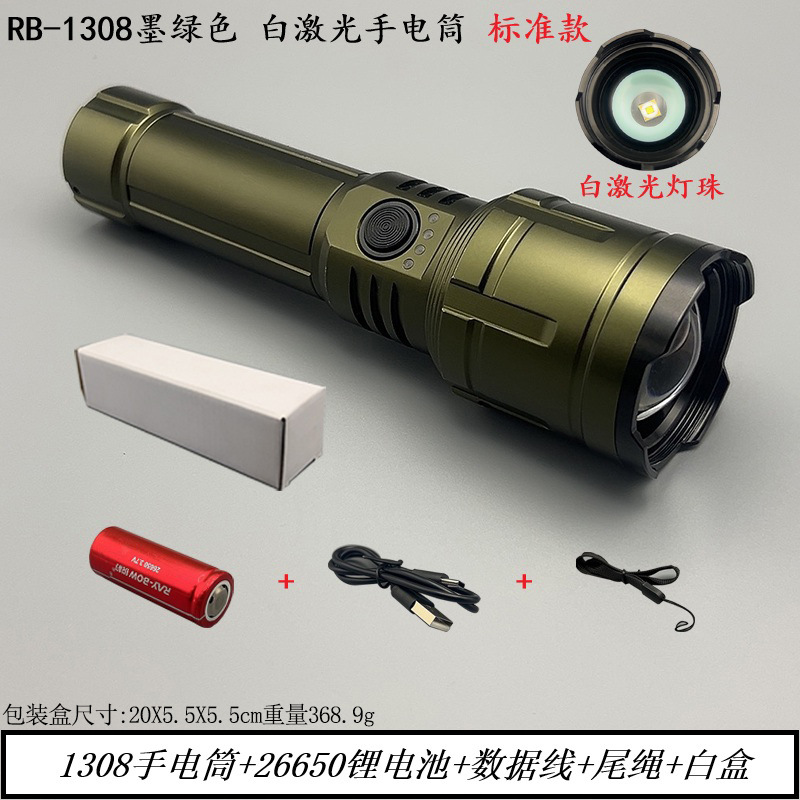 • RB-1308 짙은 녹색 백색 레이저 손전등 표준 모델(베어 램프 + 26650 리튬 배터리 + 데이터 케이블 + 화이트 박스)