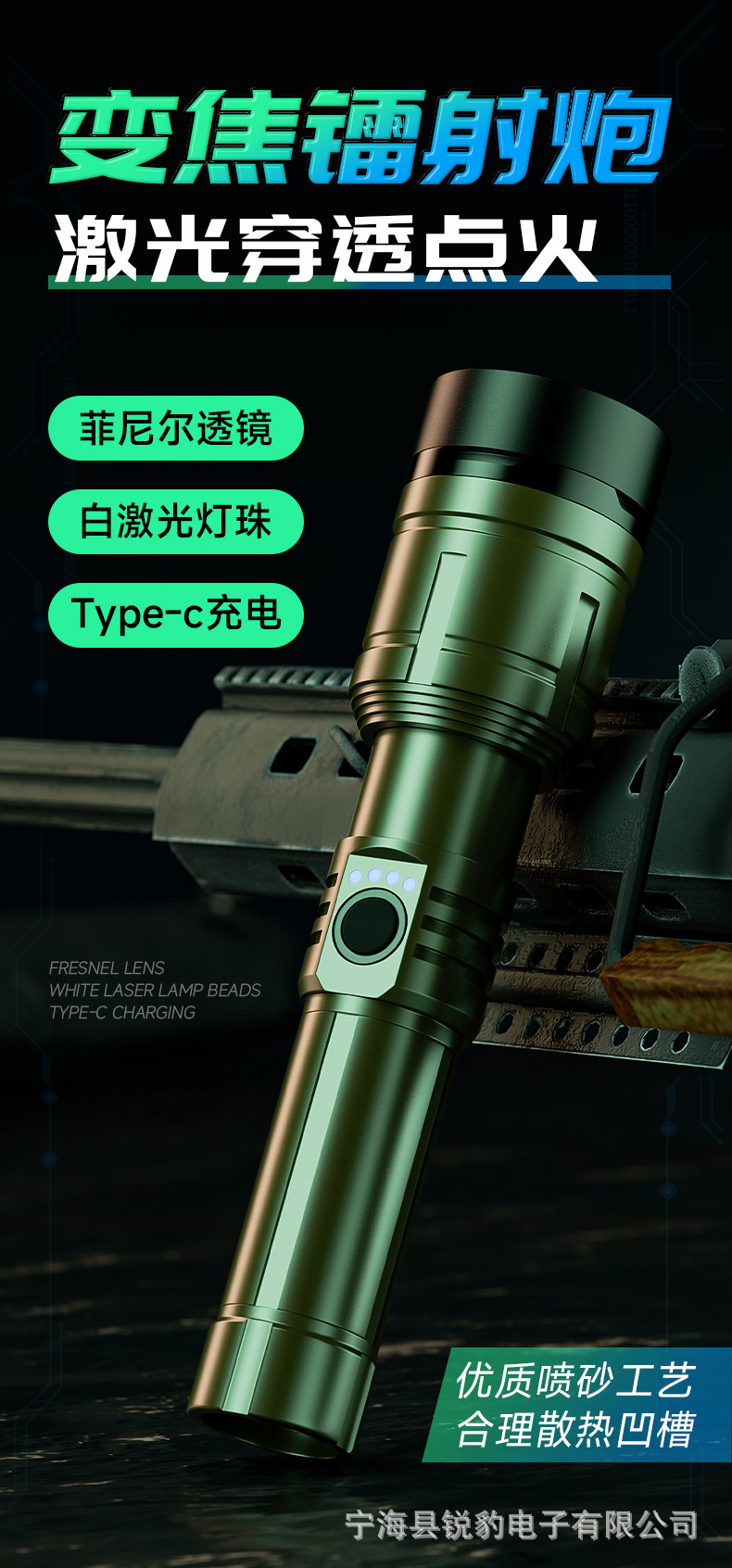 국경을 넘는 인기 제품, 화이트 레이저 손전등, 디지털 디스플레이, 줌 기능, 야외 캠핑, 순찰, 조명, 강한 빛, 손전등, 구매 가능