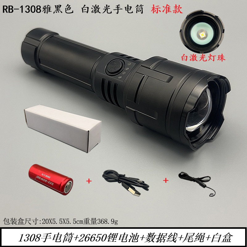 • RB-1308 우아한 검정색 흰색 레이저 손전등 표준 모델(베어 램프 + 26650 리튬 배터리 + 데이터 케이블 + 흰색 상자)