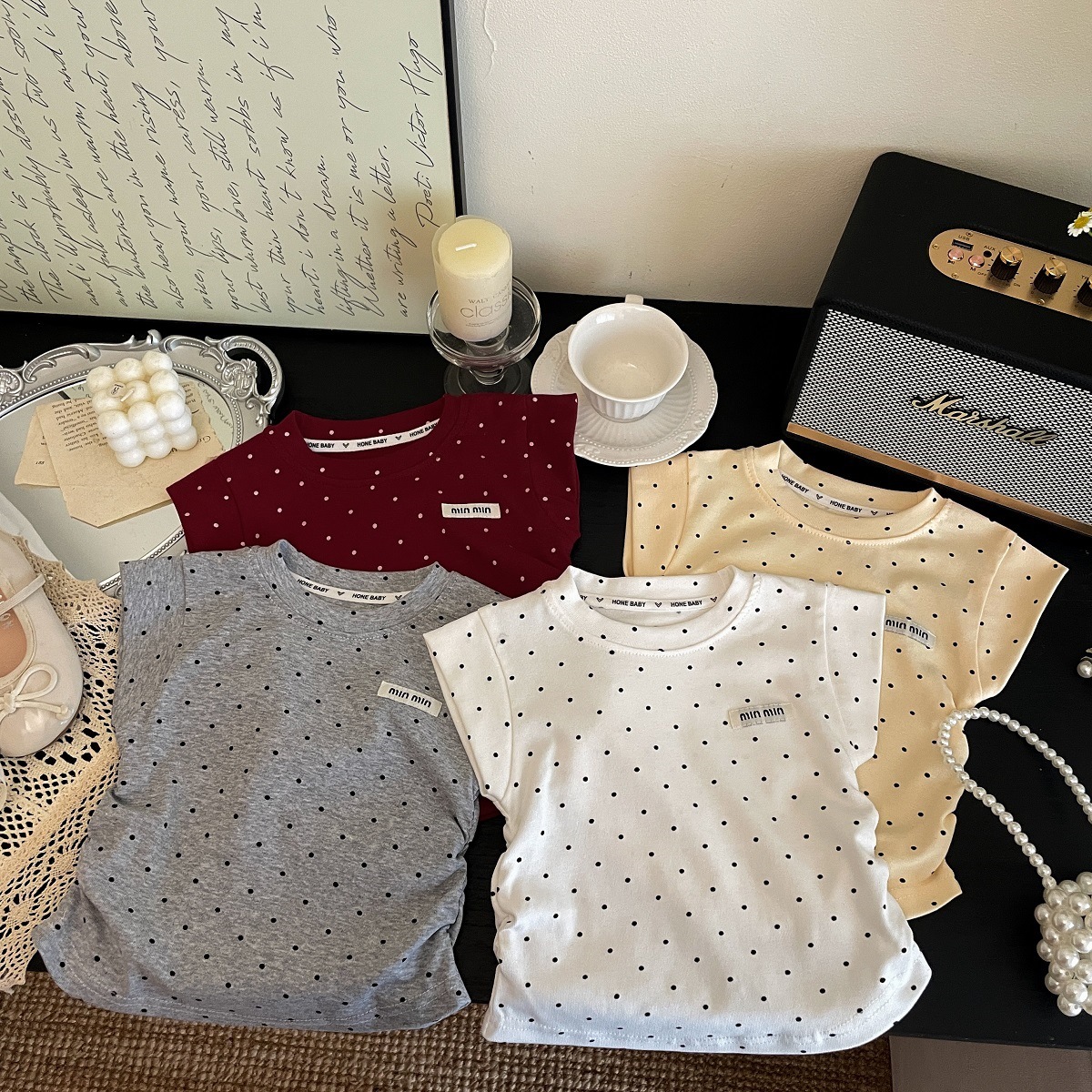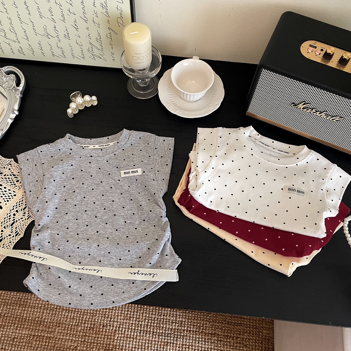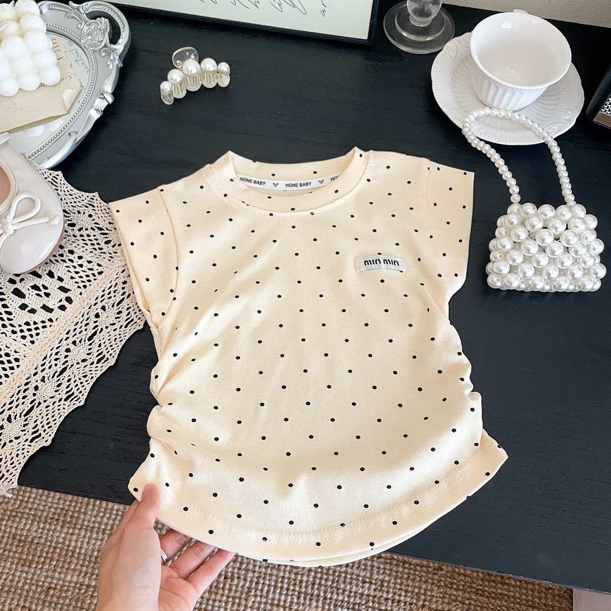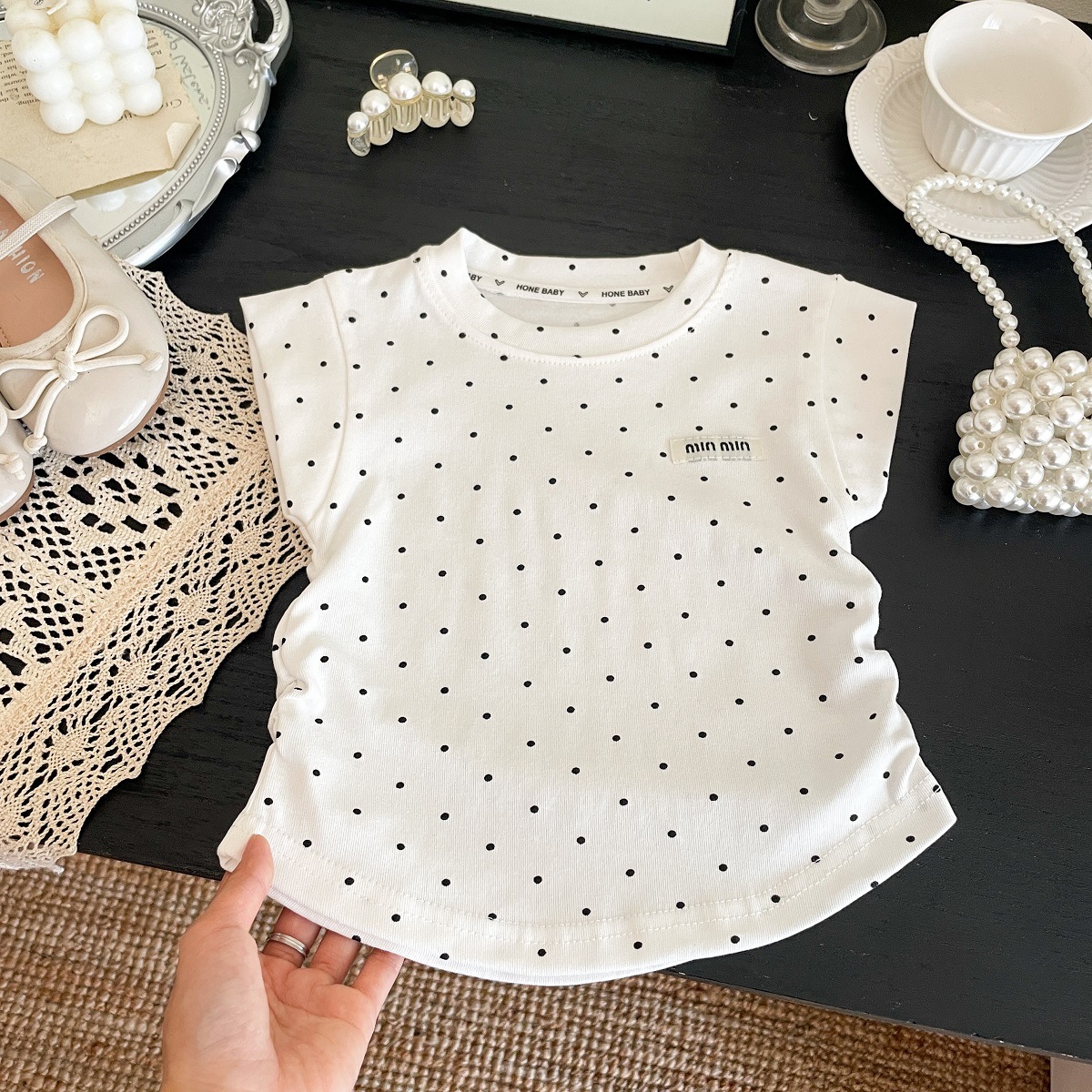 [부모-자식 스타일] 새로운 달콤한 폴카 도트 소녀 반팔 2025 여름 어린이 티셔츠 서양식 다용도 아동복스토어 가기