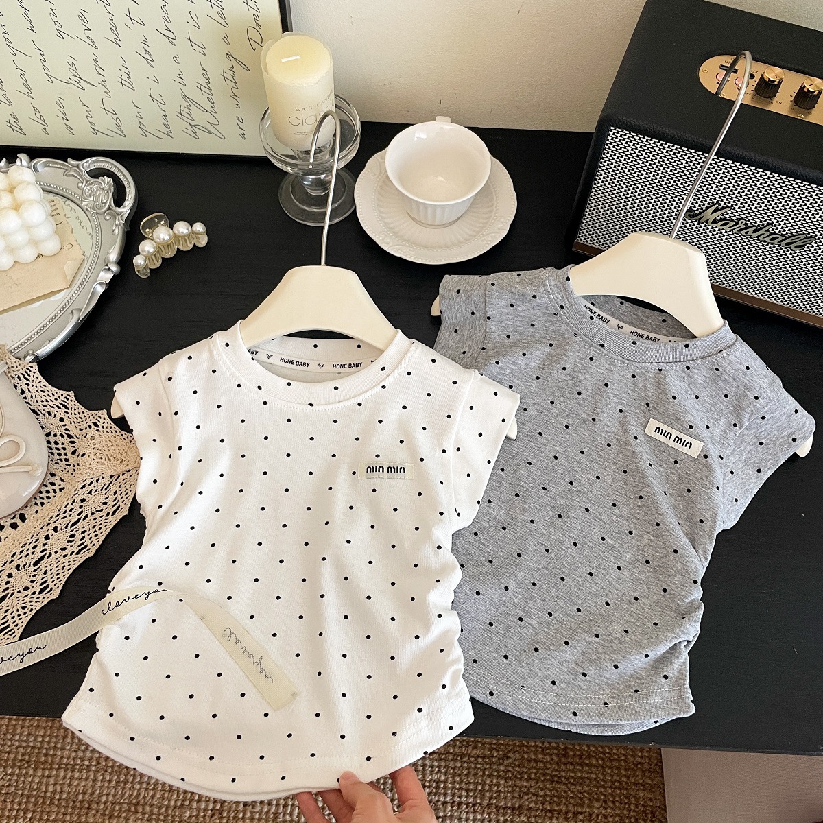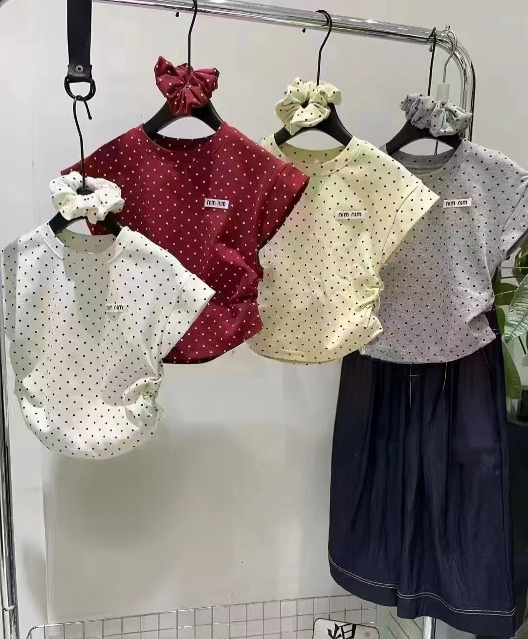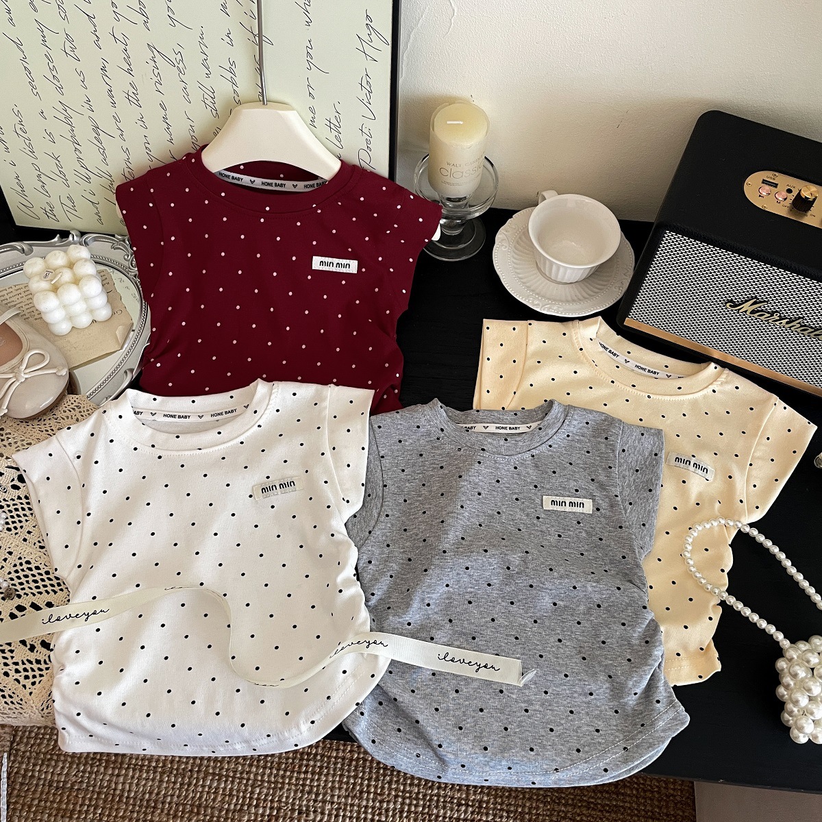 [부모-자식 스타일] 새로운 달콤한 폴카 도트 소녀 반팔 2025 여름 어린이 티셔츠 서양식 다용도 아동복스토어 가기