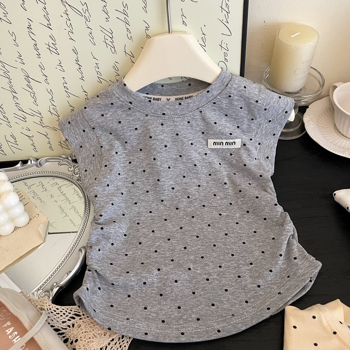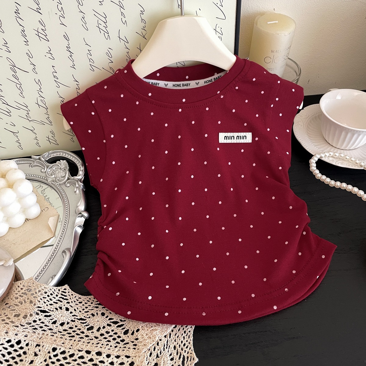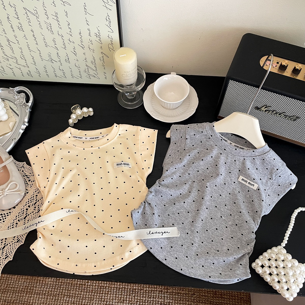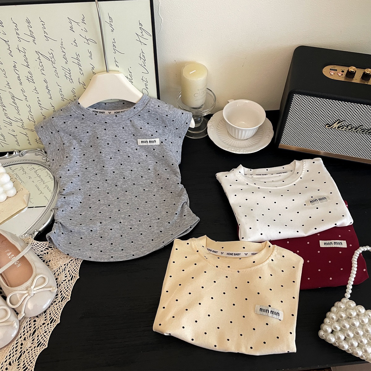 [부모-자식 스타일] 새로운 달콤한 폴카 도트 소녀 반팔 2025 여름 어린이 티셔츠 서양식 다용도 아동복스토어 가기