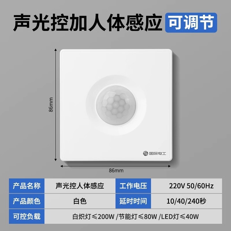 음성 제어 스위치 유형 86 사운드 및 조명 제어 + 인체 유도 스위치 220V 복도 지연 벽 패널 센서