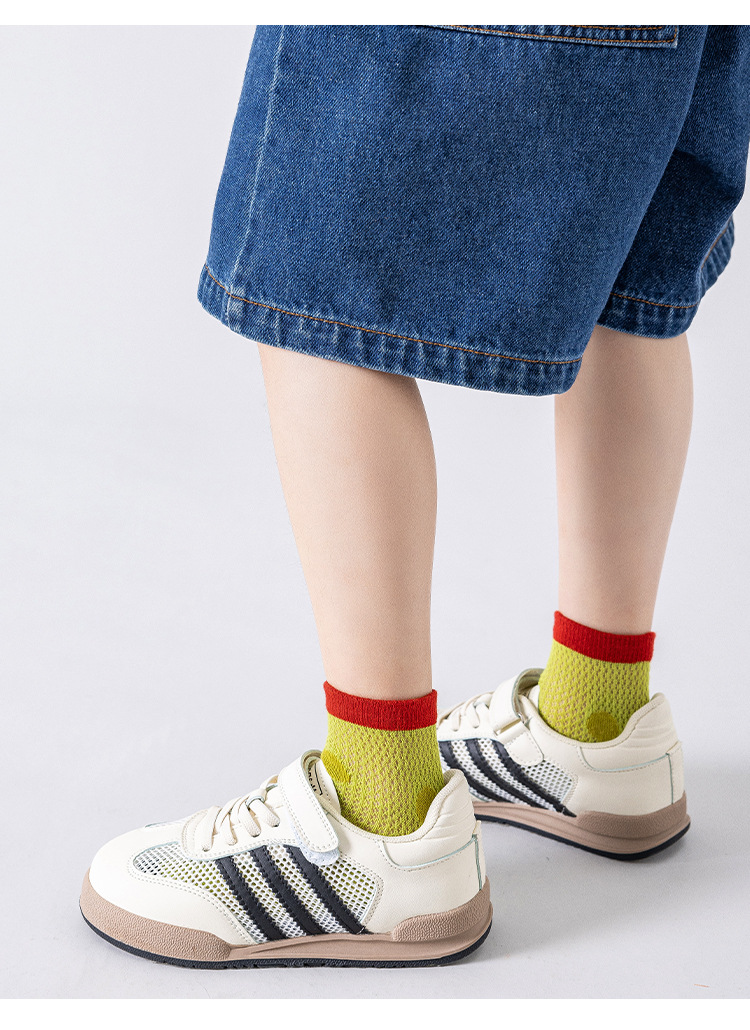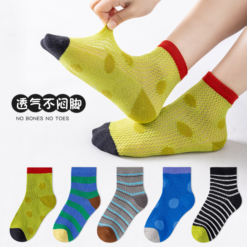 아마존 소년 양말 여름 얇은 2025 줄무늬 클래스 a면 양말 통기성 스포츠 메쉬 큰 어린이 양말 도매스토어 가기