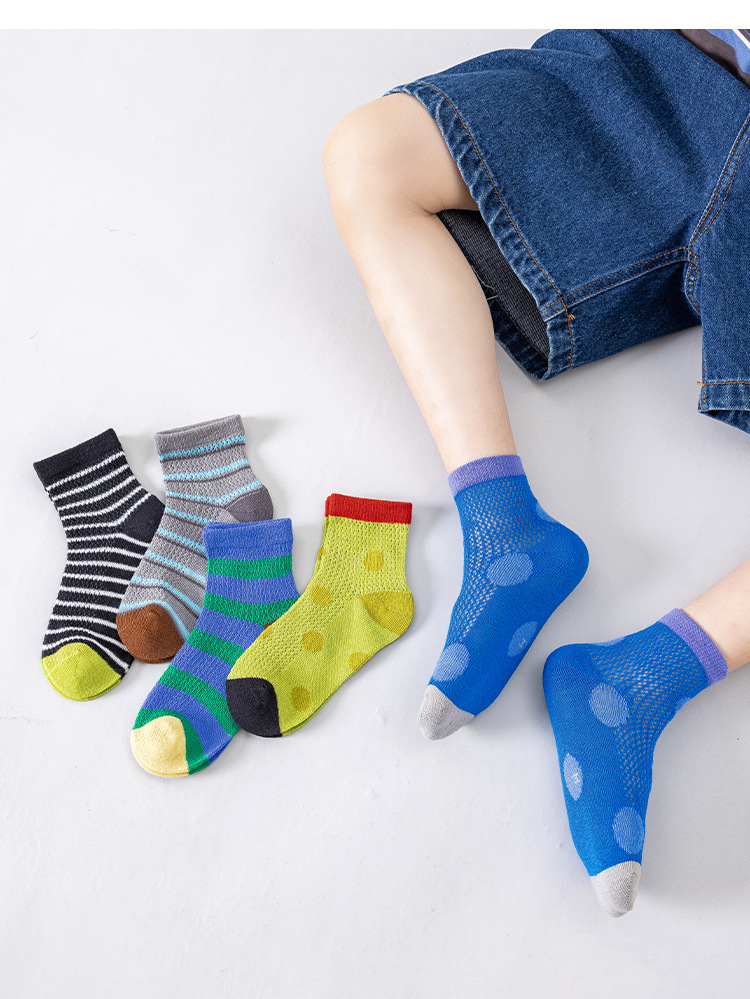 아마존 소년 양말 여름 얇은 2025 줄무늬 클래스 a면 양말 통기성 스포츠 메쉬 큰 어린이 양말 도매