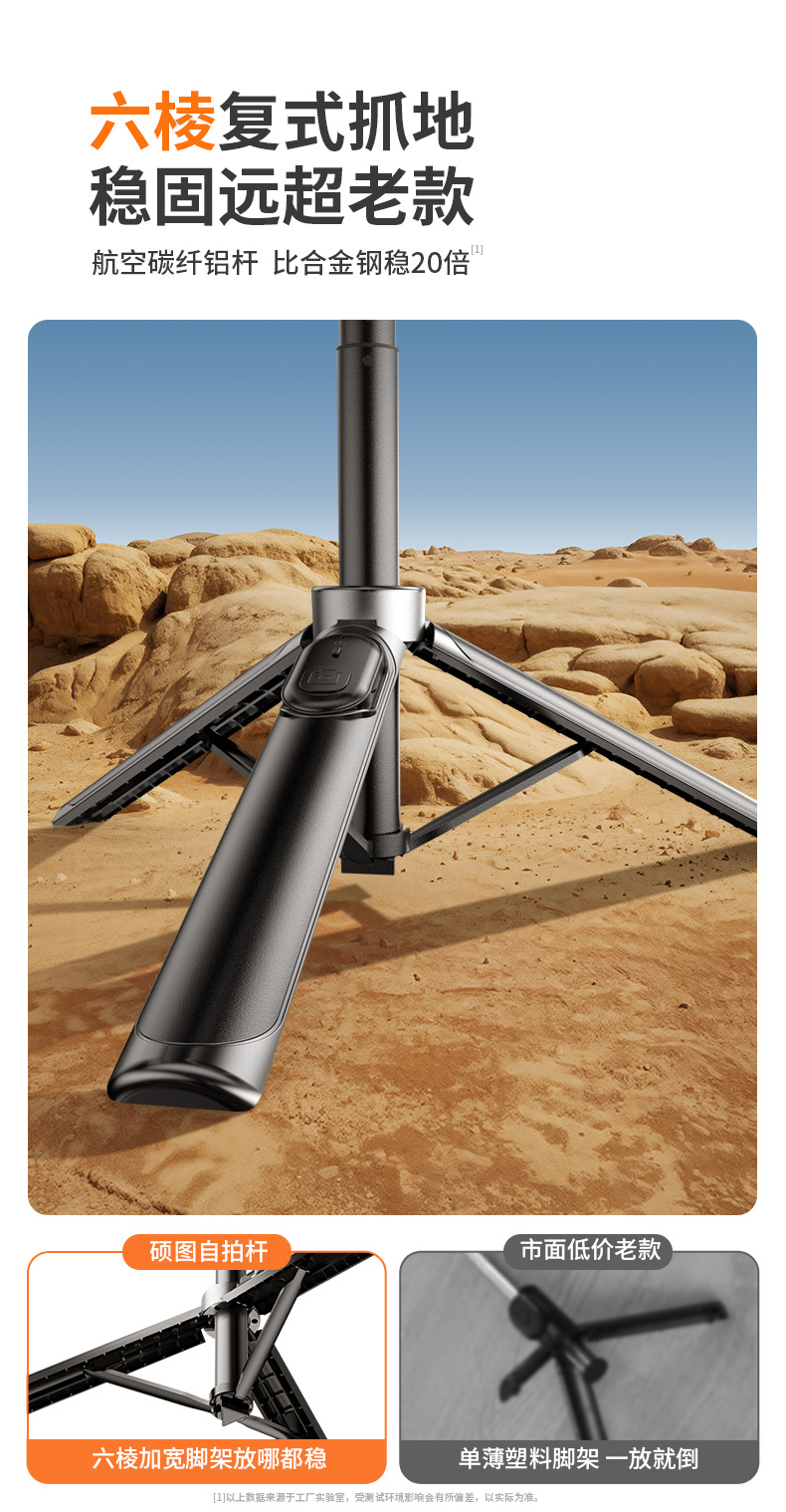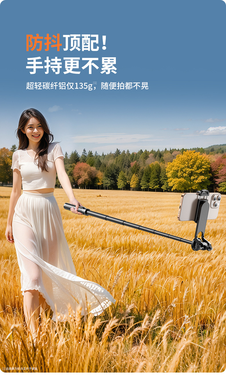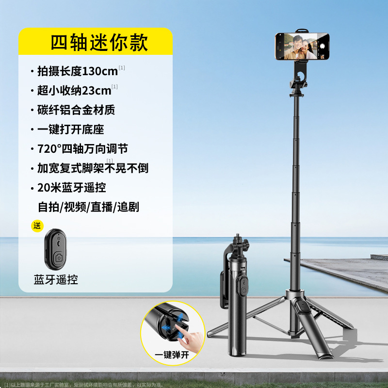 • 1.3m [휴대용 모델] 탄소 섬유 알루미늄은 안정적이고 흔들리지 않습니다. 원클릭 팝업. 휴대용 바닥 셀카. 1/4 나사 구멍 포함.