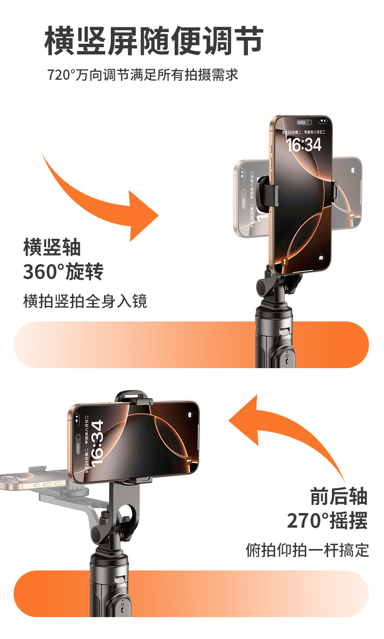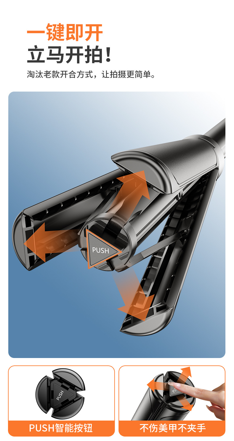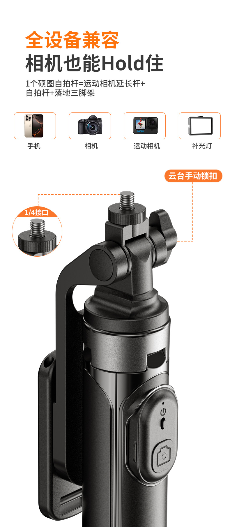 • 1.3m [휴대용 모델] 탄소 섬유 알루미늄은 안정적이고 흔들리지 않습니다. 원클릭 팝업. 휴대용 바닥 셀카. 1/4 나사 구멍 포함.