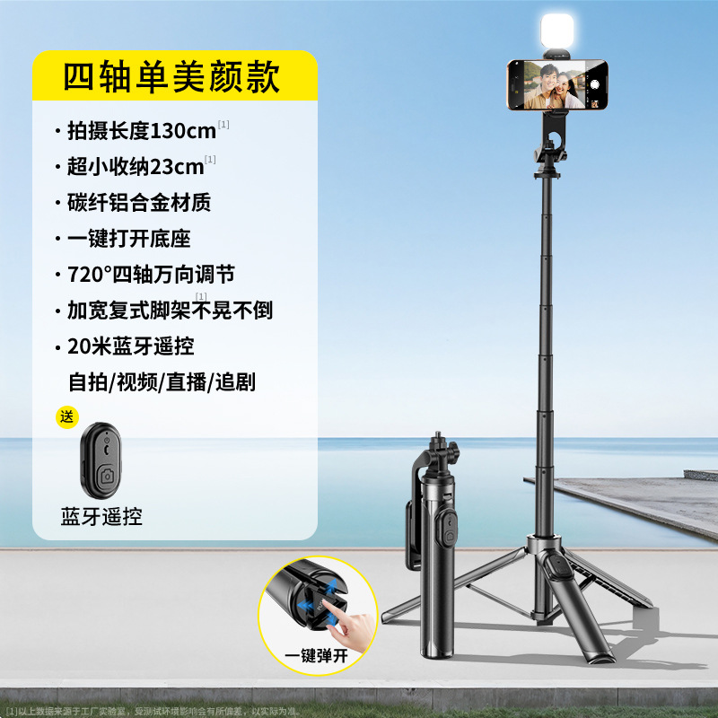 • 1.3m [뷰티 필인 싱글 램프] 탄소 섬유 알루미늄은 안정적이고 흔들리지 않습니다. 원클릭 팝업 휴대용 바닥 셀카 - 1/4 나사 구멍 포함