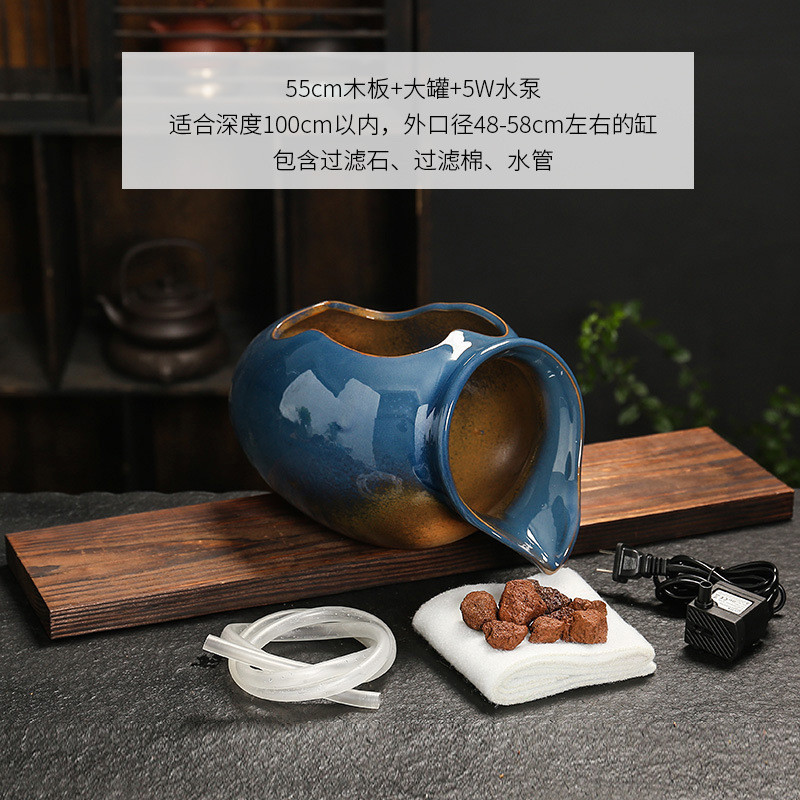 Qh 순환 실린더 액세서리 흐르는 물 생태 세라믹 항아리 수조 장식품 게으른 필터 조경 장식 오픈 안뜰 Shengbang
