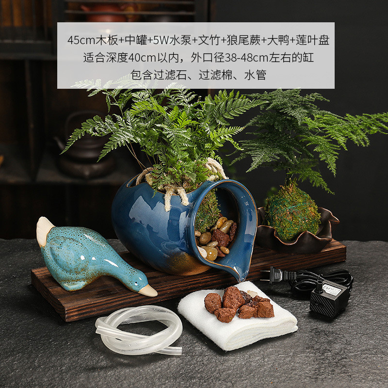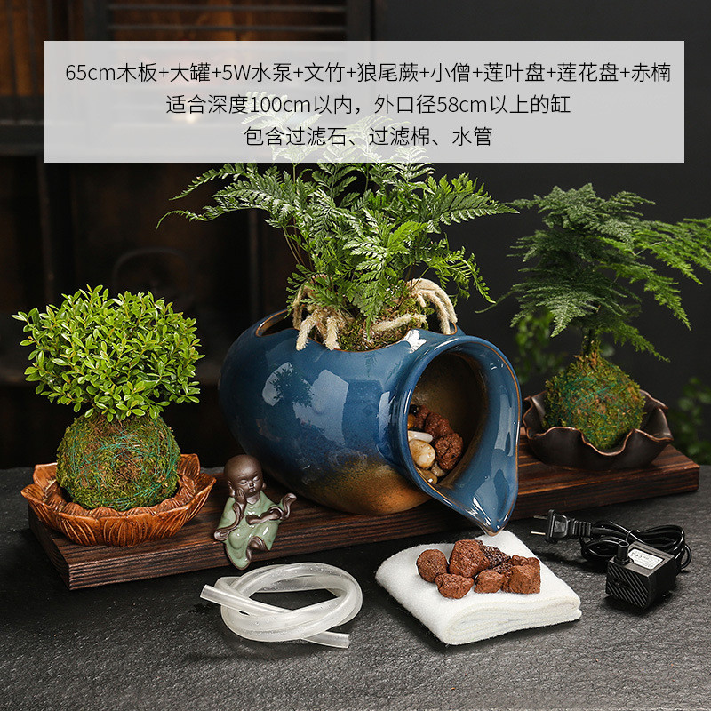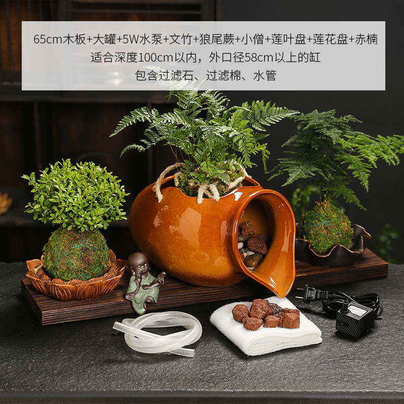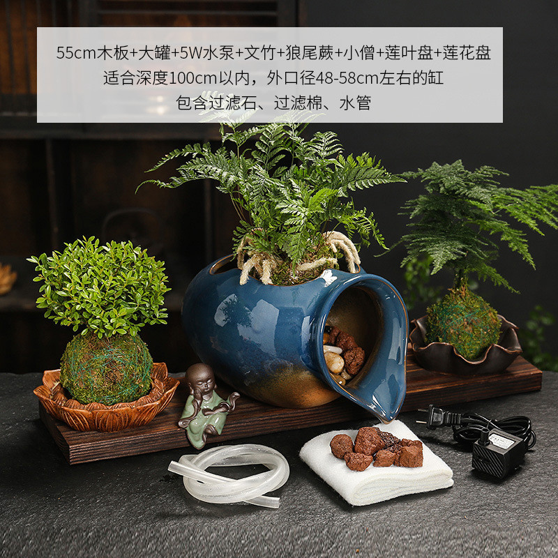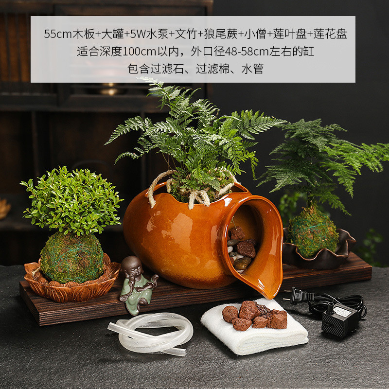 Qh 순환 실린더 액세서리 흐르는 물 생태 세라믹 항아리 수조 장식품 게으른 필터 조경 장식 오픈 안뜰 Shengbang스토어 가기