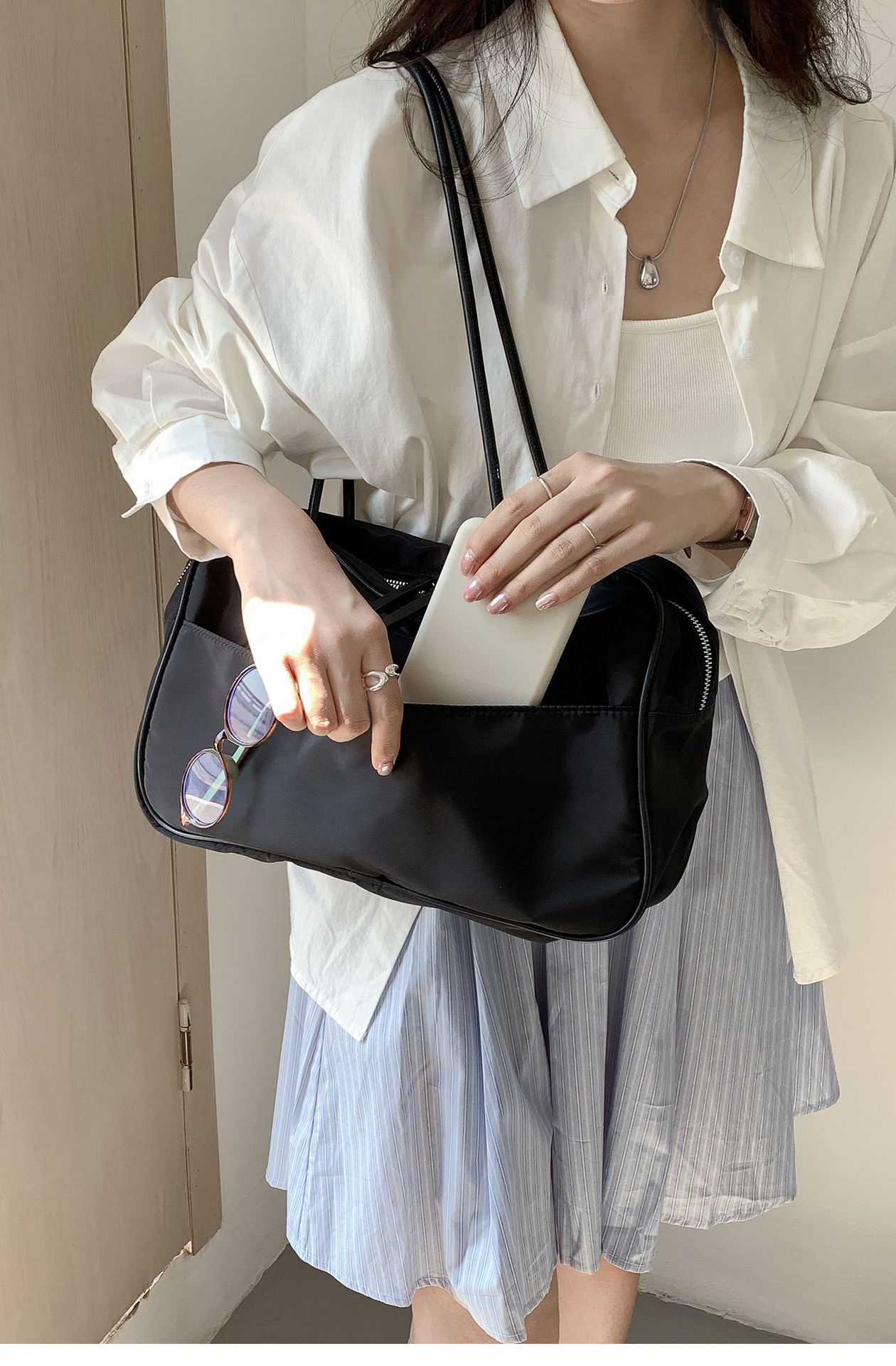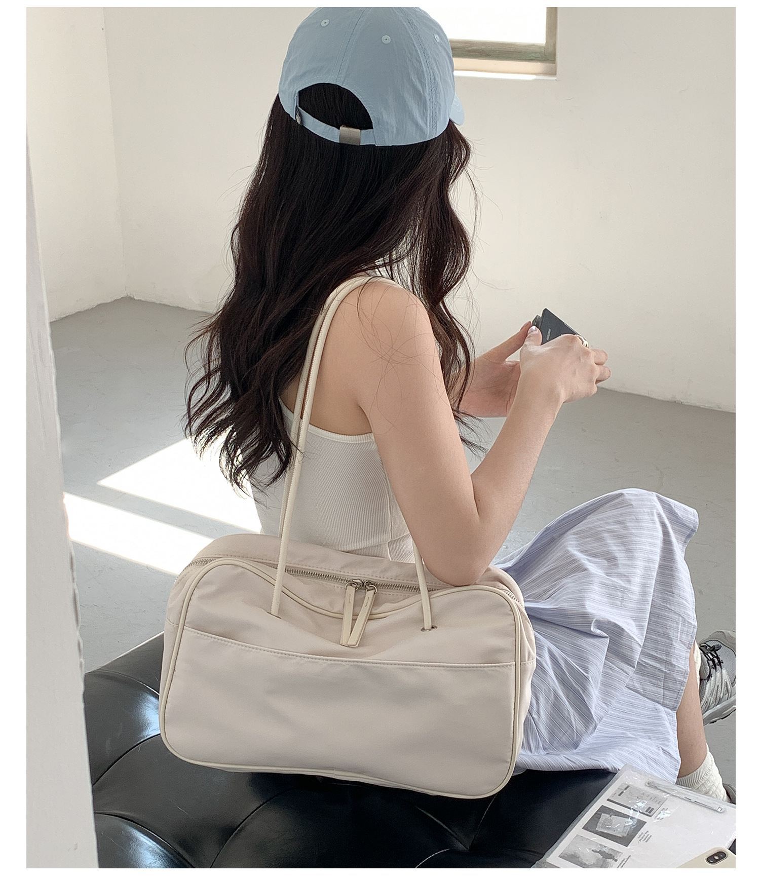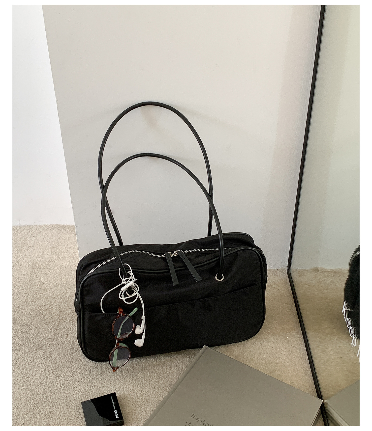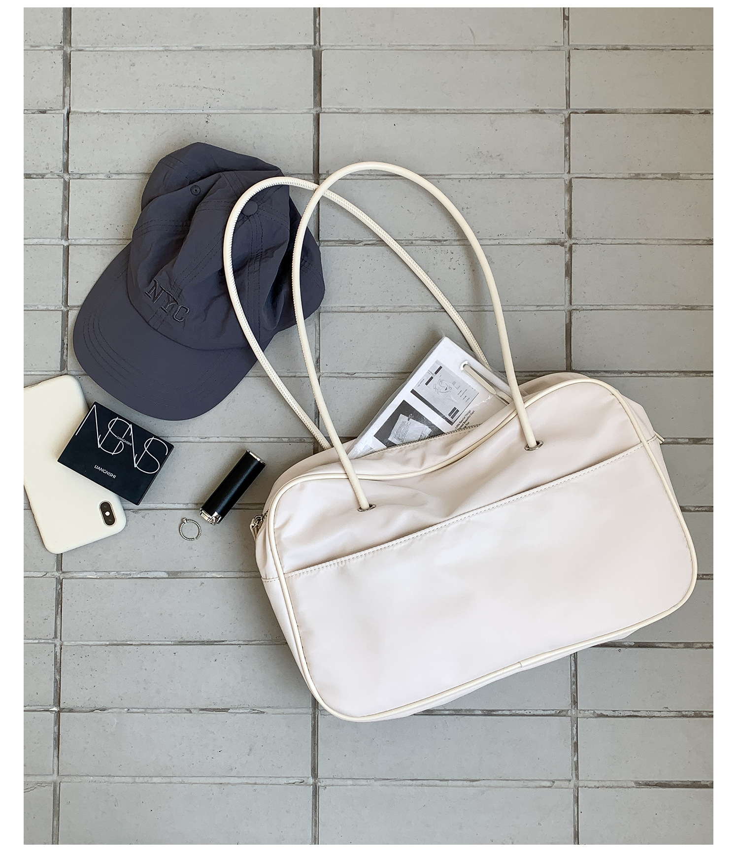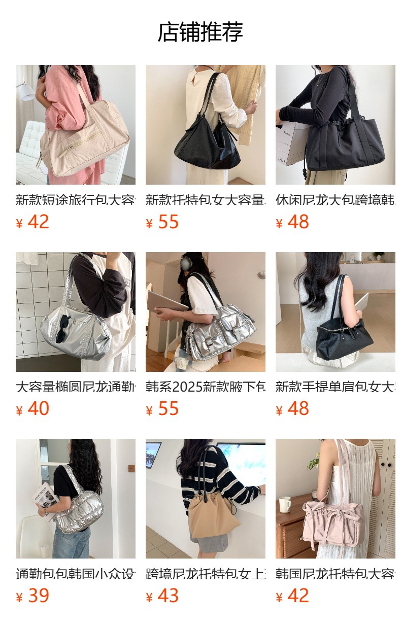 나일론 숄더백 여성용 대용량 다용도 신상 보스턴 통근 가방 여행용 단색 심플 핸드백 여성용스토어 가기