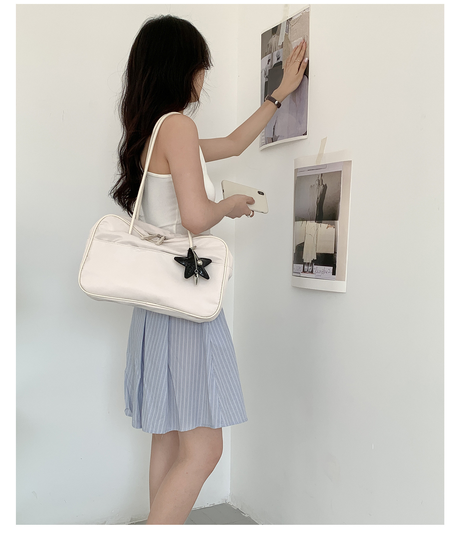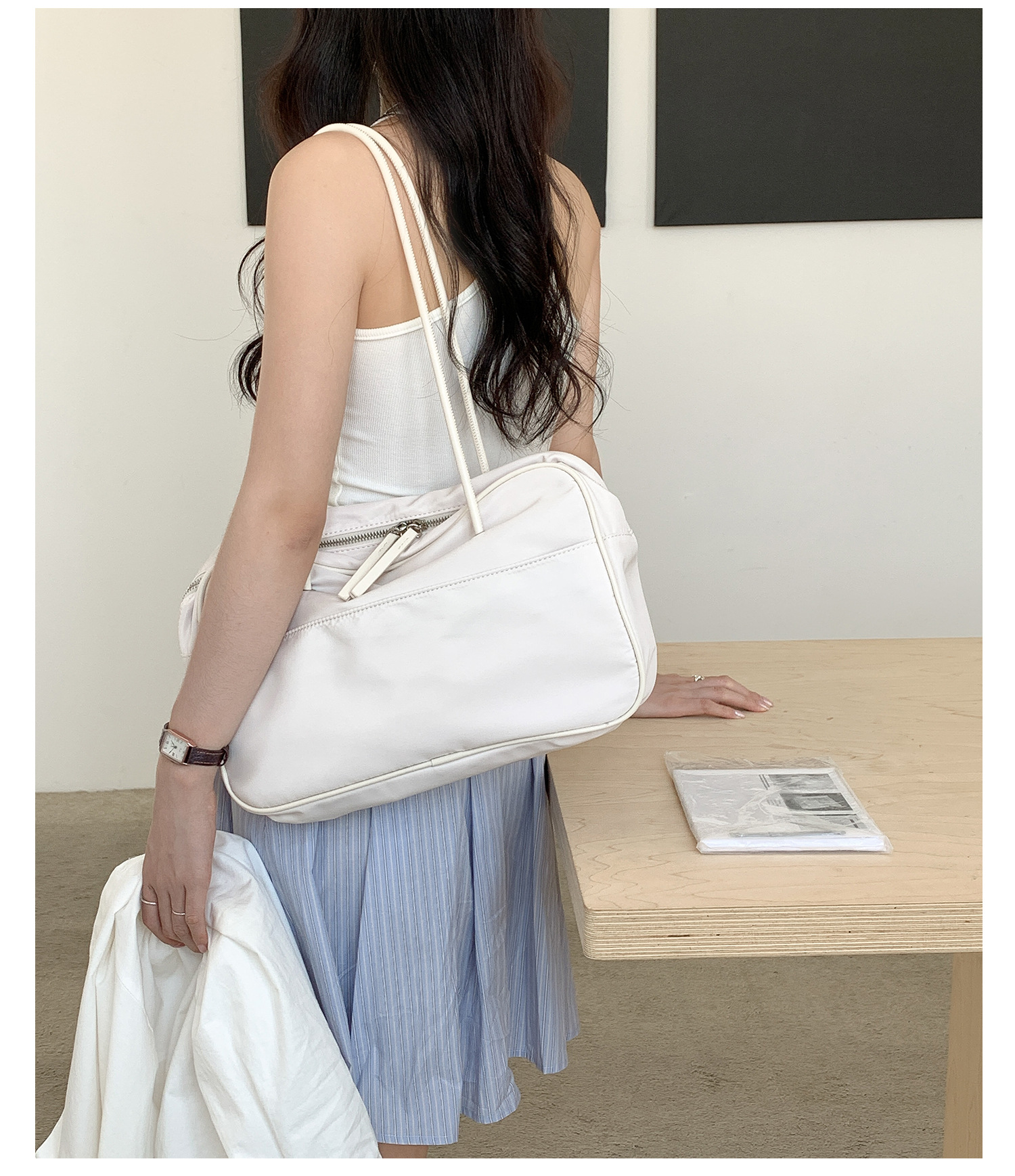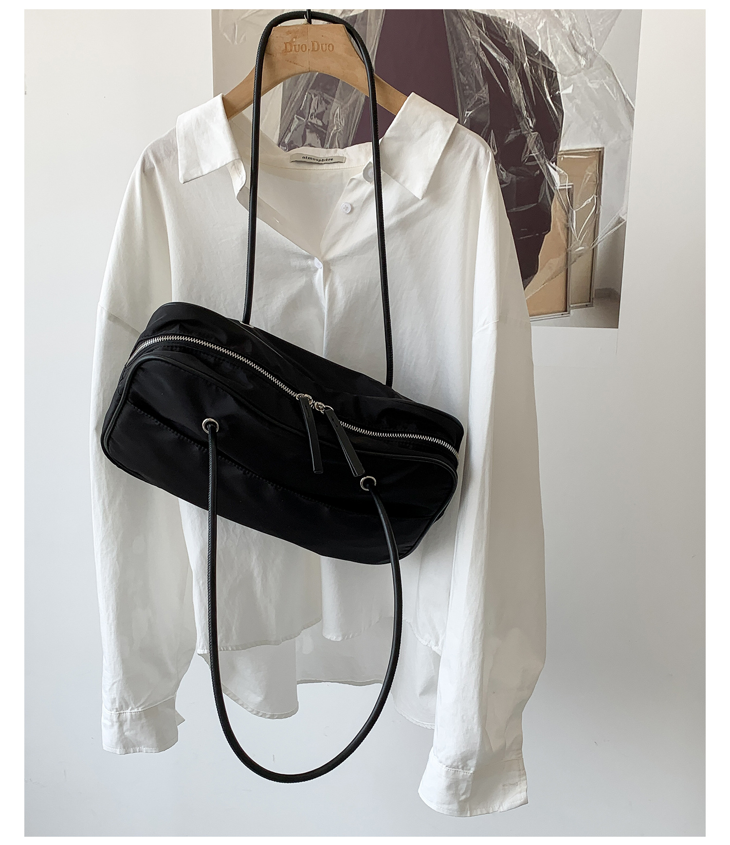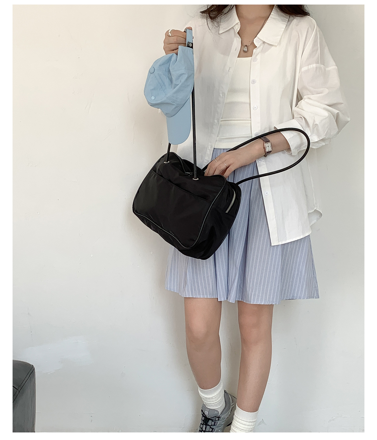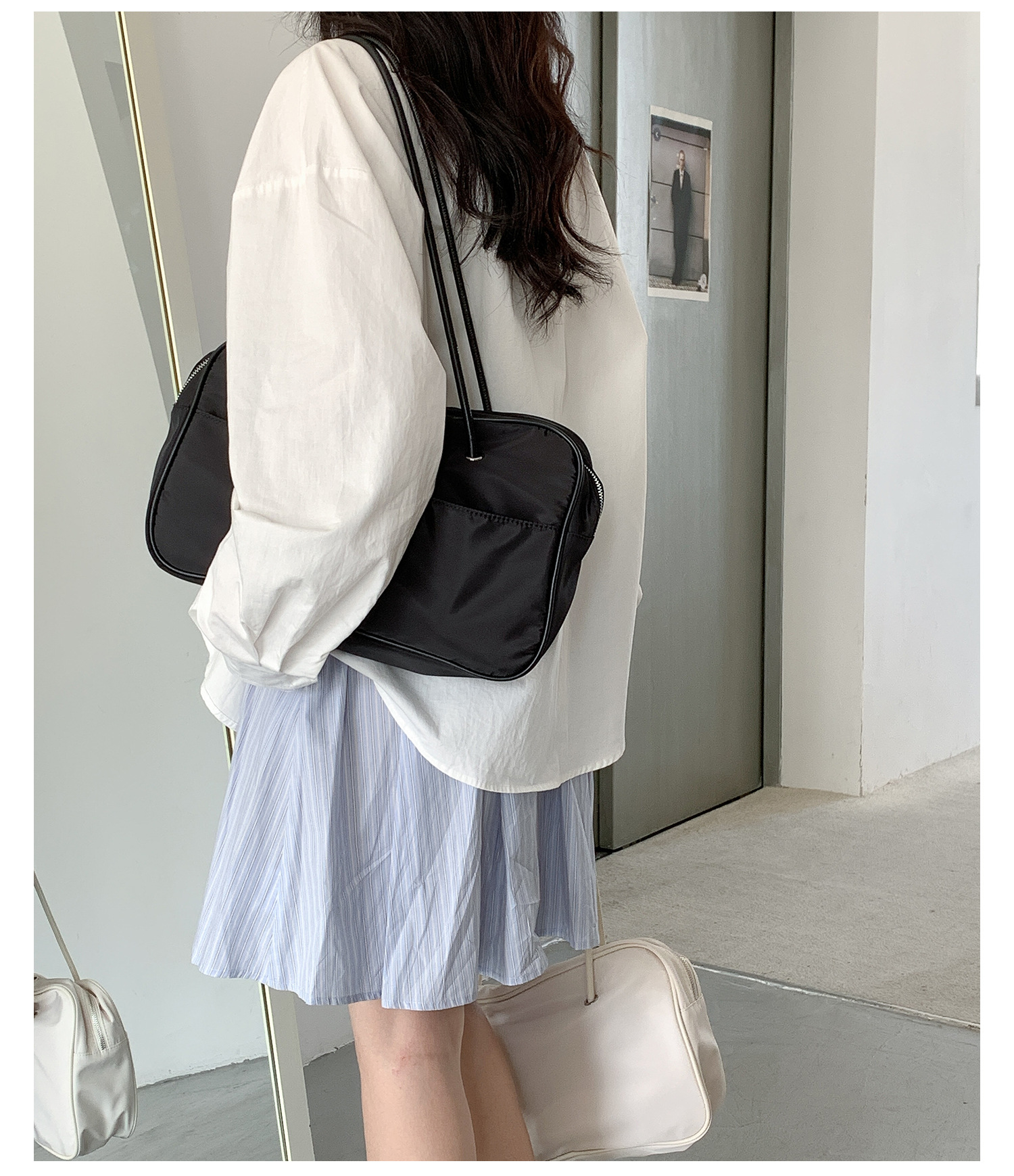 나일론 숄더백 여성용 대용량 다용도 신상 보스턴 통근 가방 여행용 단색 심플 핸드백 여성용스토어 가기