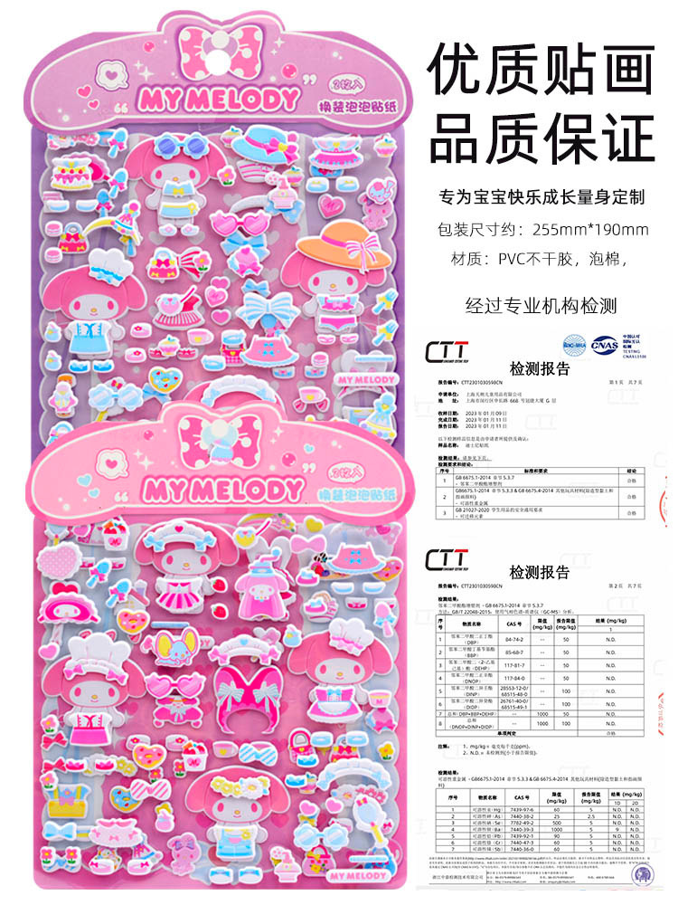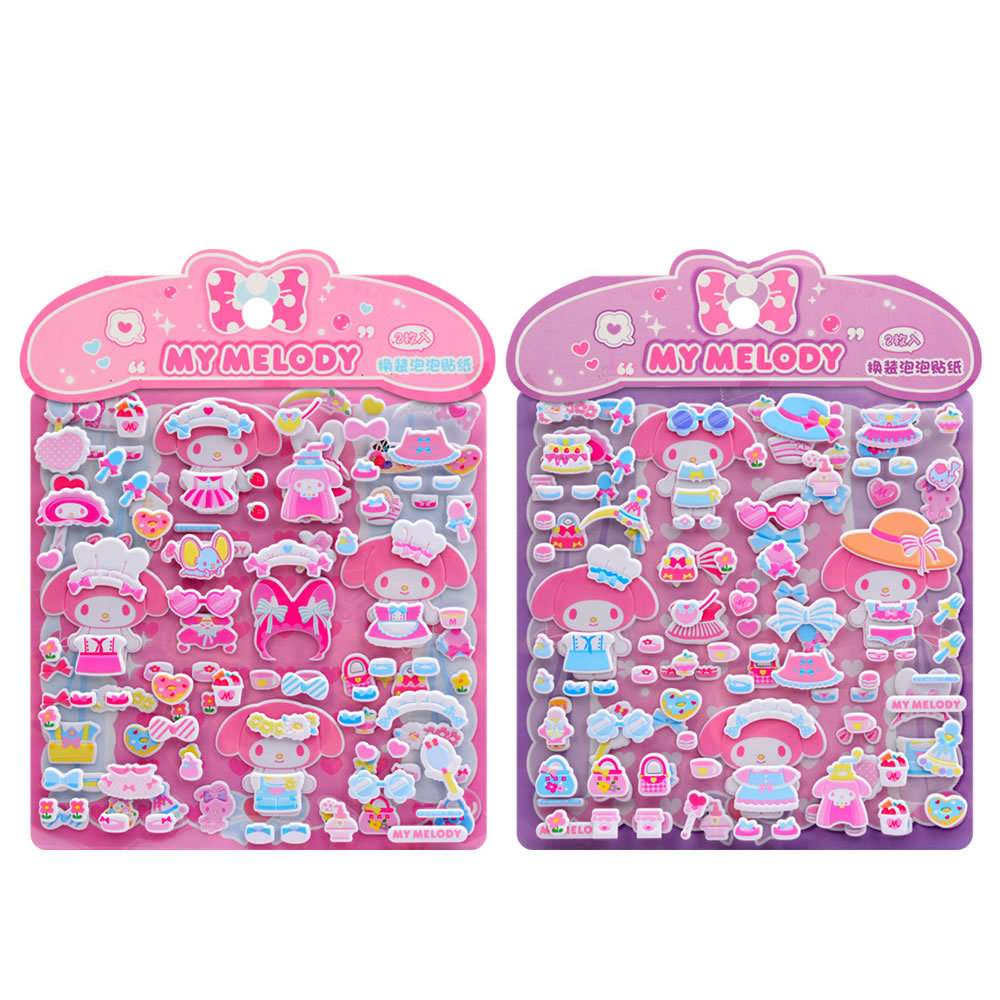 Sanrio 2피스 드레스업 스티커 만화 소녀 쿠로미 다양한 드레스업 스티커 멜로디 입체 스티커