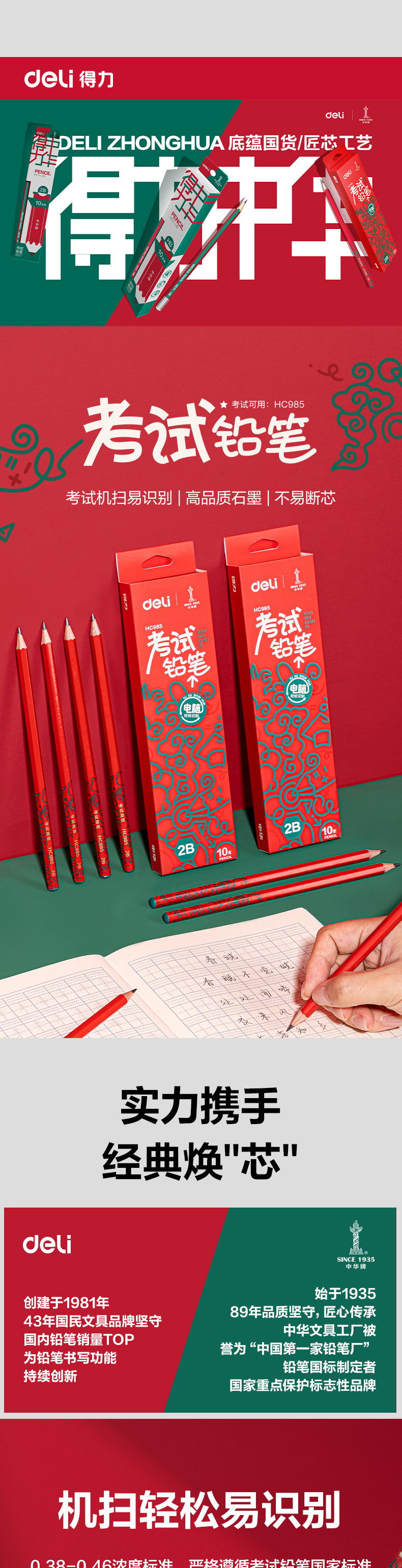 델리 HC985 중국 브랜드 공동 브랜드 연필 시험 특수 육각형 펜 홀더 어린이 스케치 쓰기 로그 연필스토어 가기