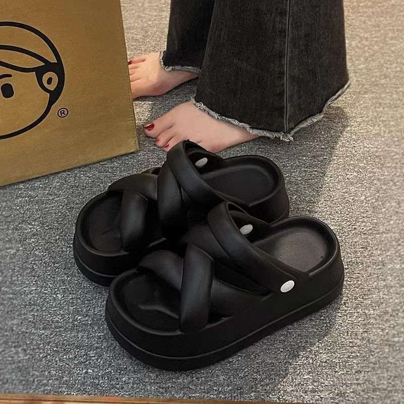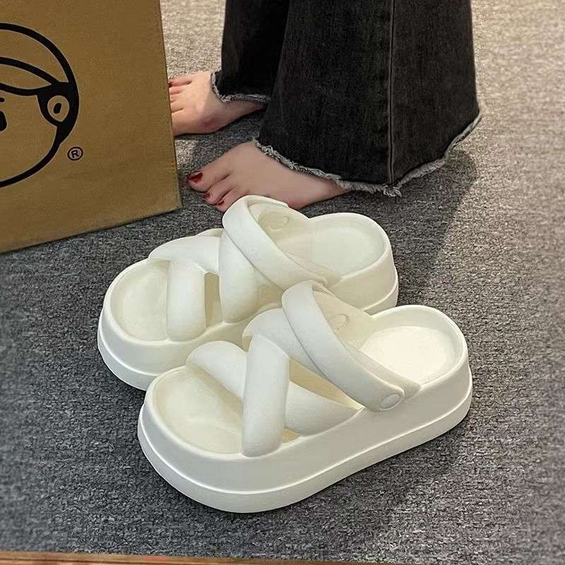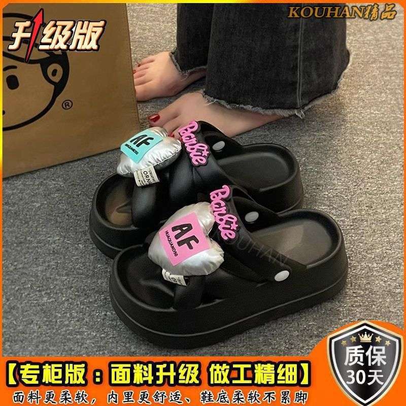 여성 여름 아우터용 똥 밟는 느낌의 러브 슬리퍼 2025 신상 두꺼운 밑창 인기 투웨어 비치 샌들