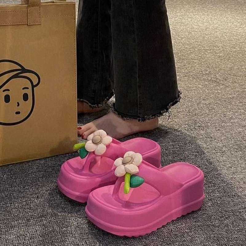 여성 여름 아우터용 똥 밟는 느낌의 러브 슬리퍼 2025 신상 두꺼운 밑창 인기 투웨어 비치 샌들스토어 가기